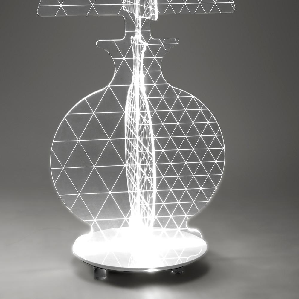kryształ akrylu rozświetla się, uwydatniając kształt produktu.