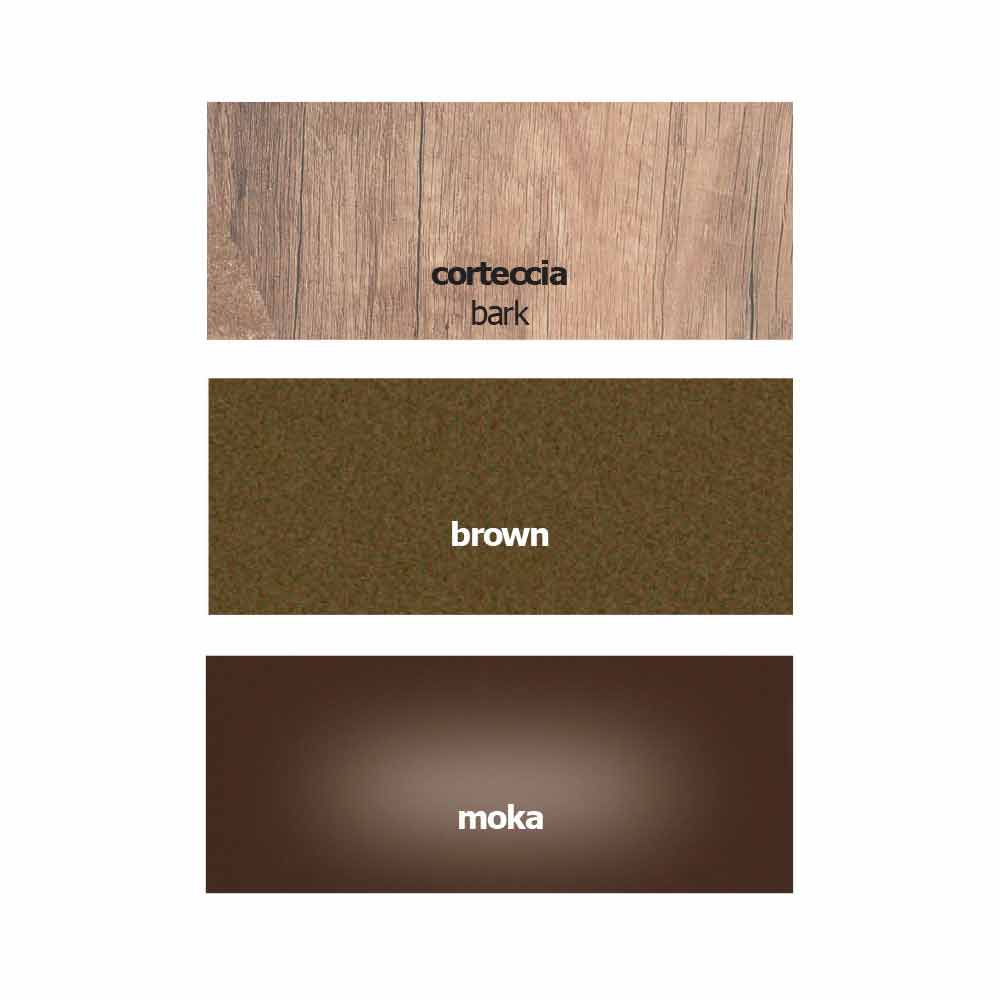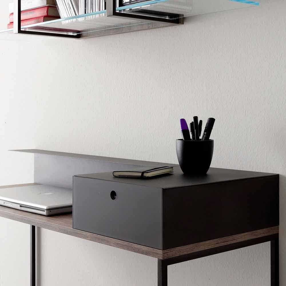 Nowoczesne i eleganckie biurko wykonane we Włoszech z blatem z melaminy w kolorze kory i strukturą z metalu malowanego na brązowo . Jest również wyposażony w praktyczną szufladę pokrytą kryształem i umieszczoną nad blatem oraz metalowy panel tylny pasujący do podstawy. Te dwa elementy wzbogacają projekt produktu, dając mocny element funkcjonalny. Wyrafinowana estetyka i majestat drewna w połączeniu z nowoczesnym akcentem malowanego metalu i ponadczasową elegancją kryształu tworzą wyjątkowy i ekskluzywny mebel, idealny do połączenia funkcjonalności biurka z designem elementu dekoracyjnego, który może odnawiać się. styl otoczenia.