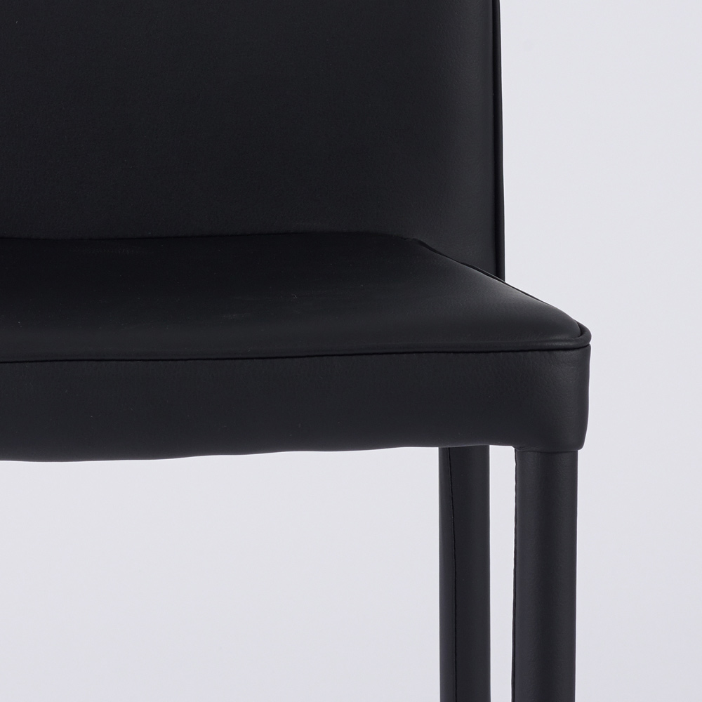 czarną ekoskórą. Dodatek meblowy, który z łatwością dopasowuje się do każdego kontekstu stylistycznego, w którym zostanie umieszczony, pomagając stworzyć