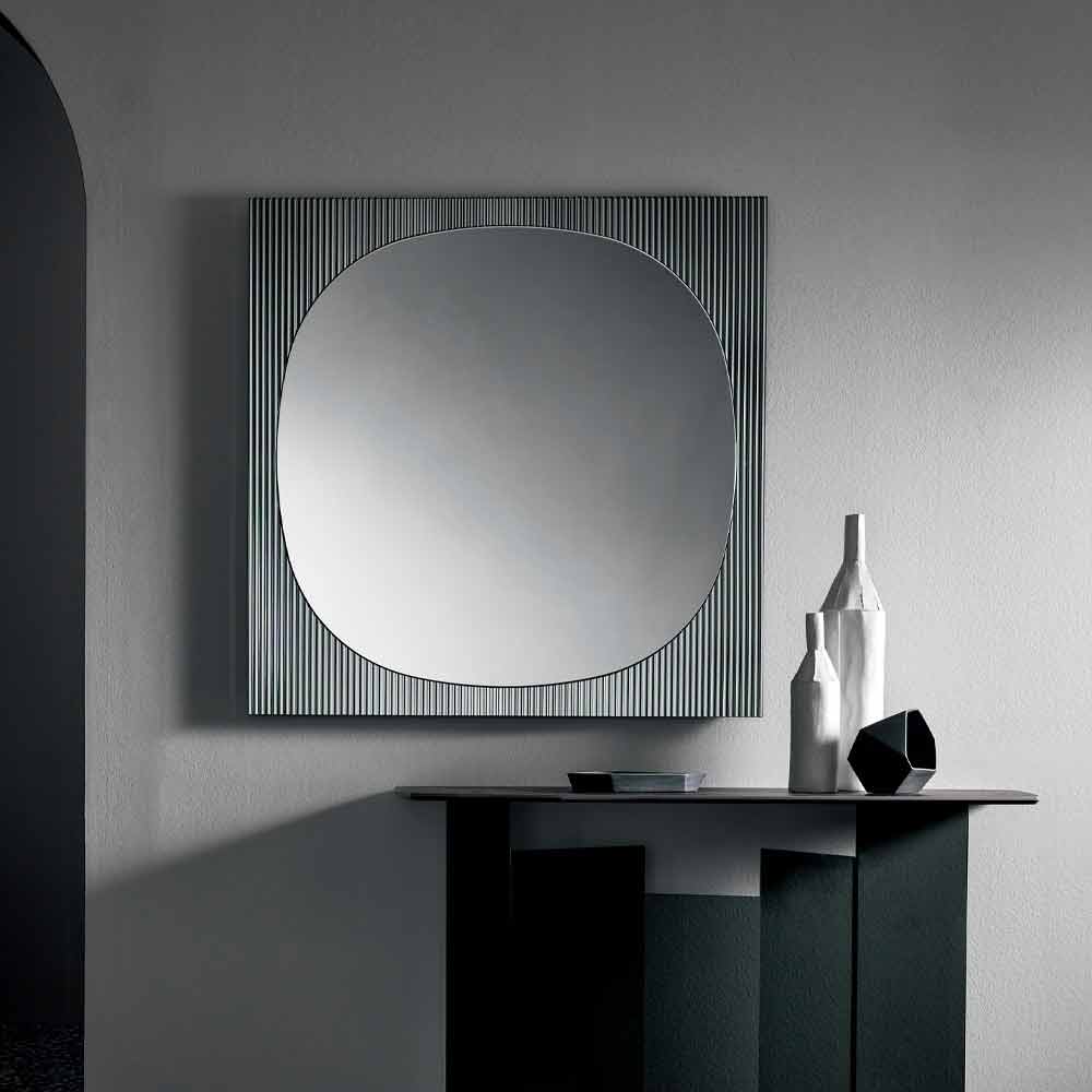 Kwadratowe lustro ścienne w nowoczesnym stylu 100x100 cm ze szkłem dymnym, wykonane ręcznie we Włoszech.