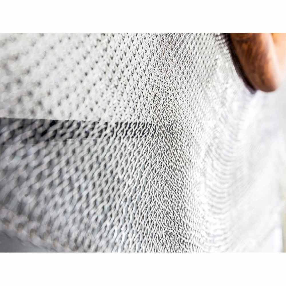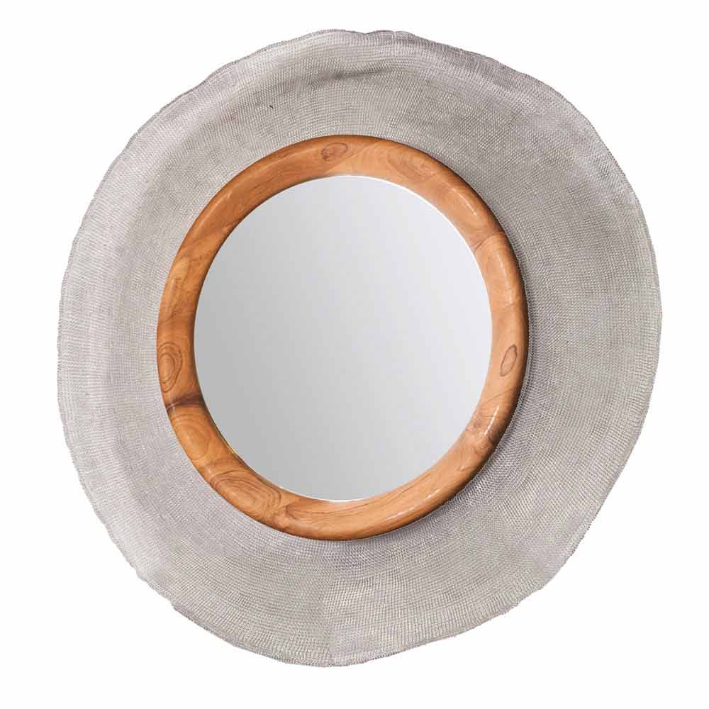 Wykonane z ręcznie tkanej metalowej siatki i nałożonej na polerowaną ramę lustra z drewna tekowego; siatka druciana może być ukształtowana zgodnie z upodobaniem.