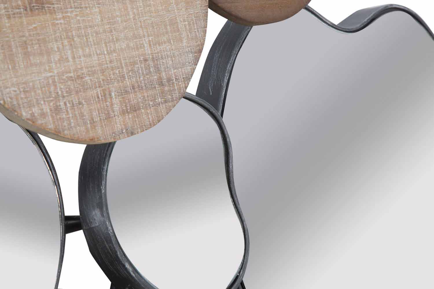 Nowoczesne lustro ścienne z drewna i żelaza.