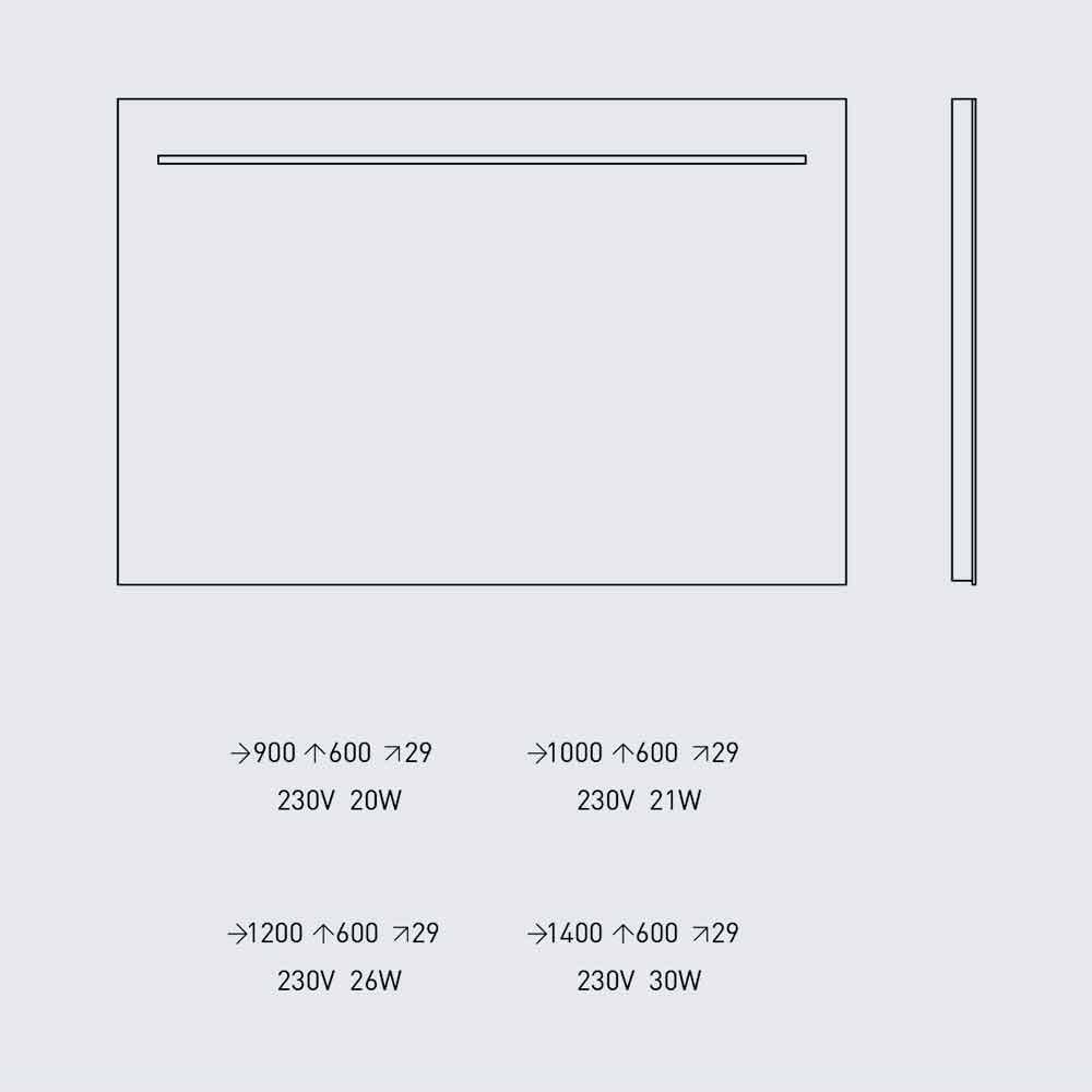 Prostokątne, podświetlane lustro ścienne z oświetleniem LED i stalową ramą Made in Italy.