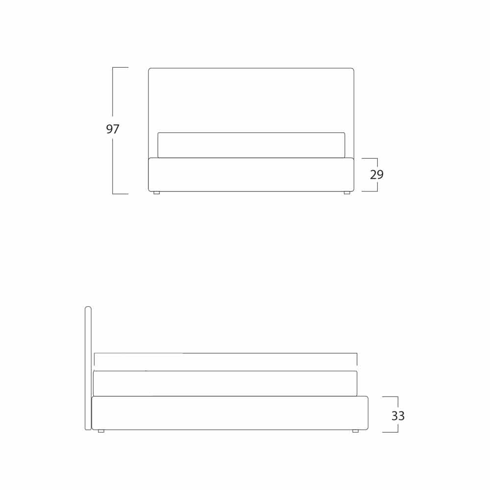 Jest całkowicie zdejmowany. Konstrukcja jest wykonana z płyty pilśniowej z drewna jodłowego z naturalnym wykończeniem wewnętrznym h.29, pokryta pianką poliuretanową bez chlorofluorowęglowodorów zgodnie z normami UNI i wyłożona lekką velfoderą. Łóżko jest dostarczane z listwową podstawą z metalową konstrukcją, zakrzywioną ramą o profilu 50x37 mm pomalowaną proszkami epoksydowymi. Zwykła ortopedyczna podstawa listwowa, 15 listew z zakrzywionej sklejki bukowej 68x8 mm na łóżko.