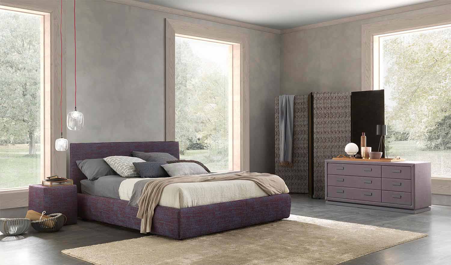 Nowoczesne łóżko podwójne pokryte tkaniną Gaya New firmy Bolzan