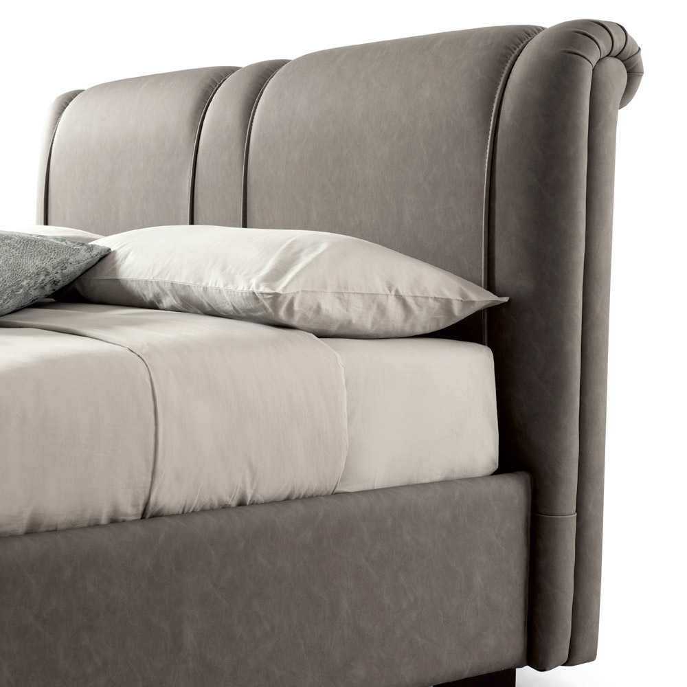 Designerskie łóżko ze skrzynią do przechowywania, pokryte ognioodporną skórą, wyprodukowane we Włoszech.