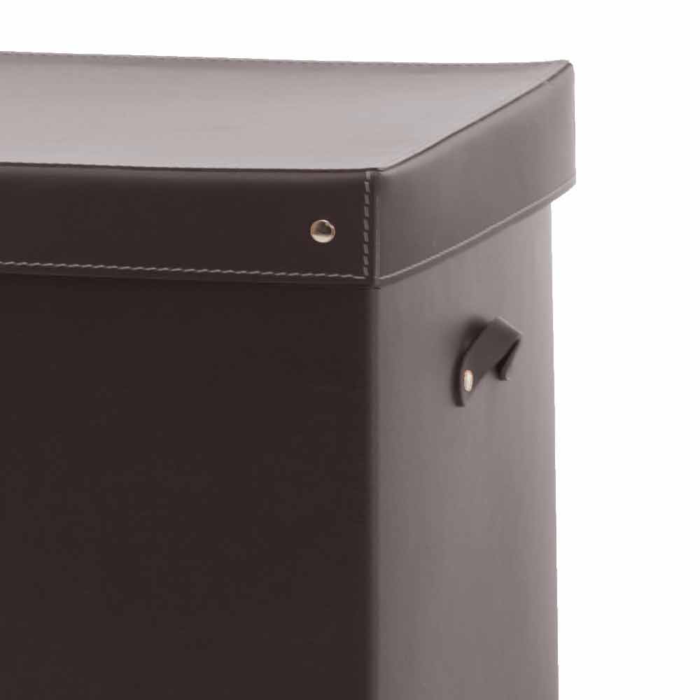 Pojemnik do przechowywania o nowoczesnym designie wykonany ręcznie we Włoszech z barwionej skóry regenerowanej.