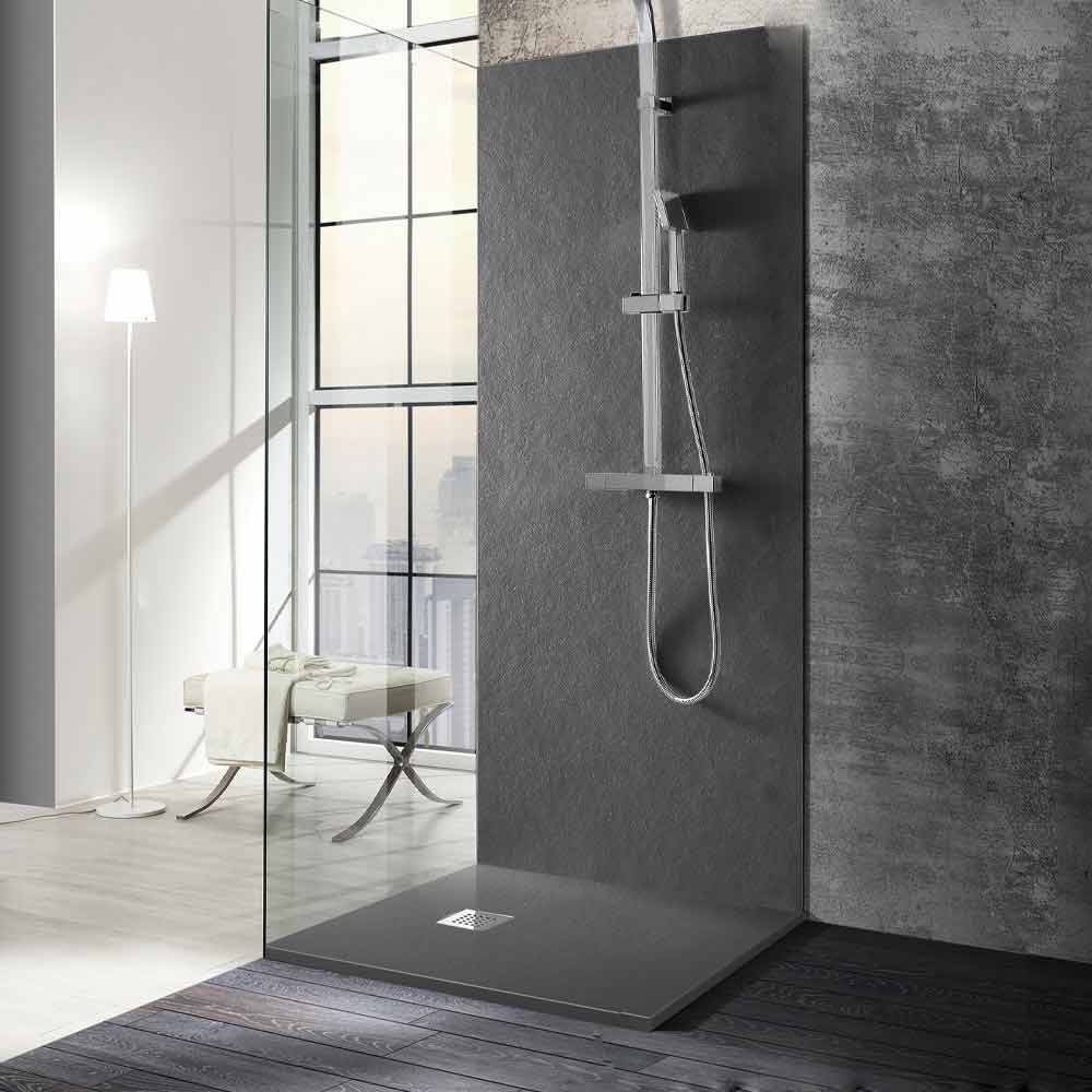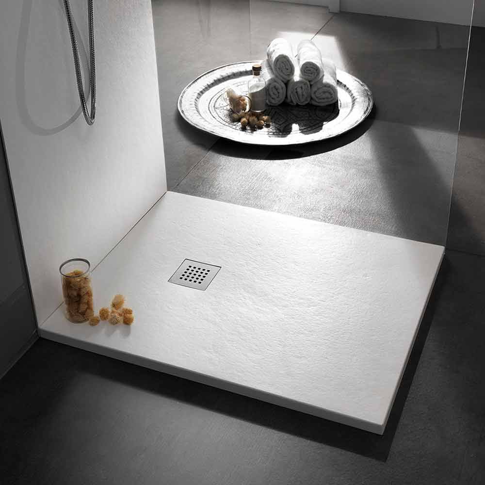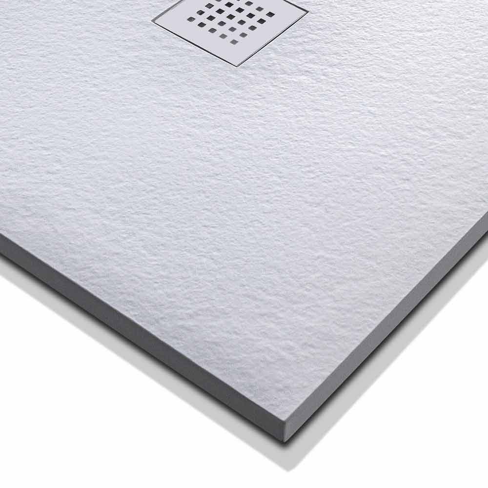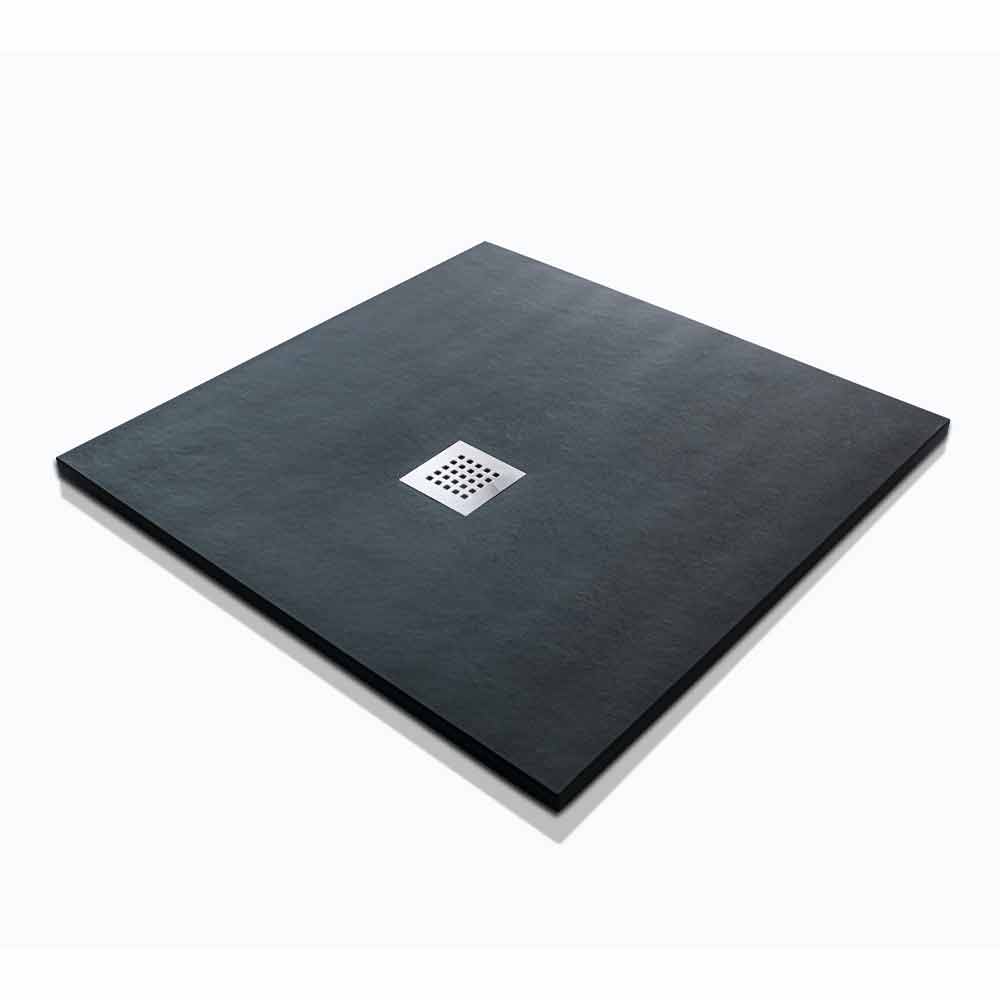 Brodzik kwadratowy 90x90 imitujący kamień ze stalową kratką.