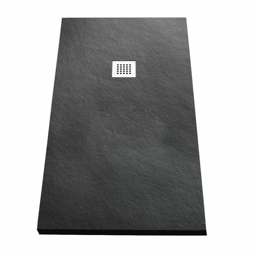 Nowoczesny brodzik 160x80 z żywicy z efektem kamienia i stali.