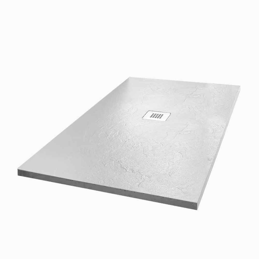 Nowoczesny brodzik 140x90 z białej żywicy ze stalową kratką.
