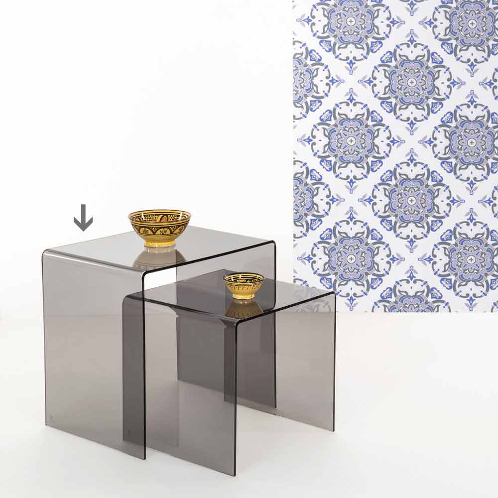 Nowoczesny design dymny stolik kawowy 50x50cm Terry Big, wyprodukowany we Włoszech Wszechstronny przezroczysty wędzony stolik nocny, inspirowany geometrią z lat 80., z plexi PMMA ze 100% pierwotnego polimeru, wycinany laserowo i gięty w wysokich temperaturach. Ważna grubość sprawia, że konstrukcja jest całkowicie samonośna. Można go sprzedawać pojedynczo, ale idealnie pasuje do bliźniaków TERRY SMALL. Pleksiszkło jest odporne na wstrząsy, nieodkształcalne, nieodwracalne i termoizolacyjne. Jasność i jasność są utrzymywane na stałym poziomie i niezmienione w czasie. Pleksi PMMA z pierwotnego polimeru jest nietoksyczny, hipoalergiczny, bezwonny i antybakteryjny. 100% do recyklingu. Zaprojektowany, zaprojektowany i wyprodukowany we Włoszech z włoskimi materiałami.