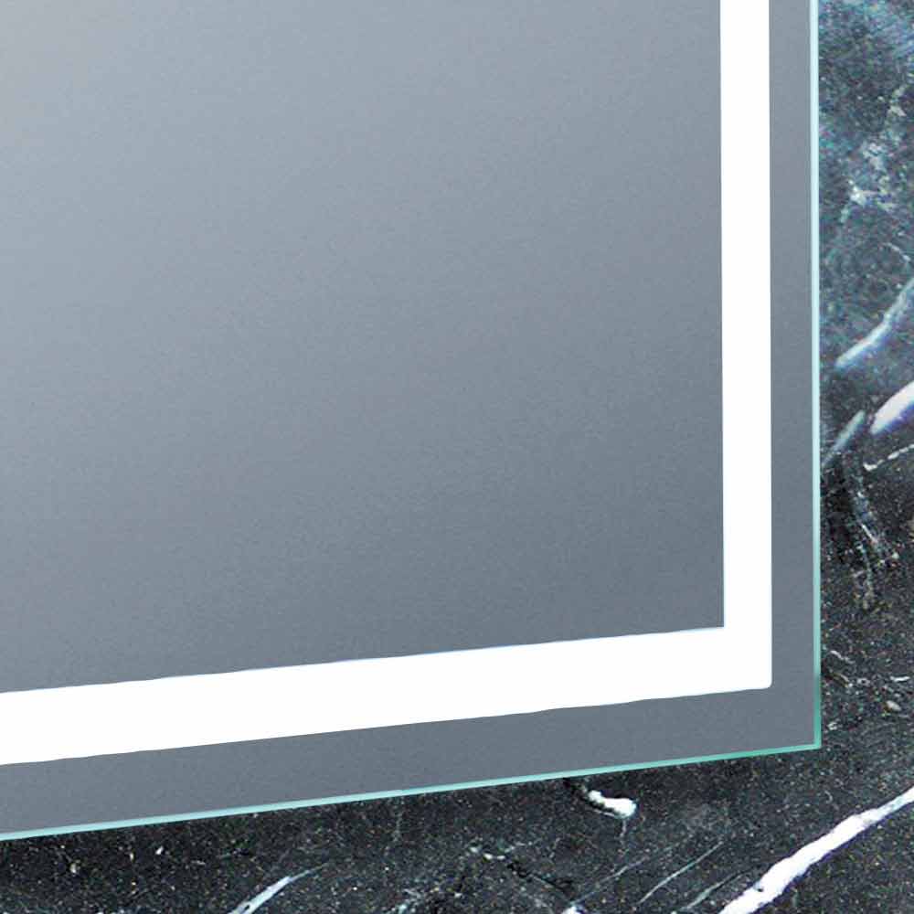 Lustro z oświetleniem LED zintegrowanym z lustrem z krawędziami ze stali nierdzewnej. Paco dostępne jest również w rozmiarze 72x96 cm.