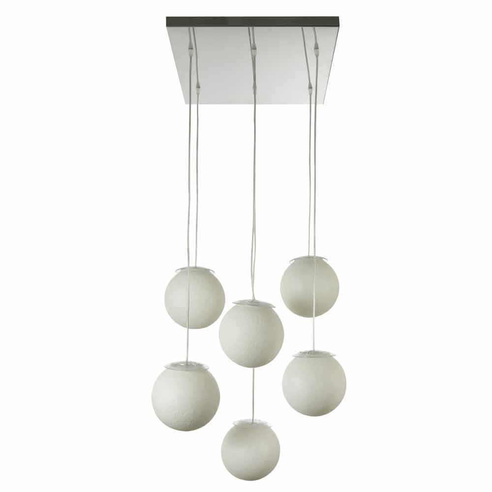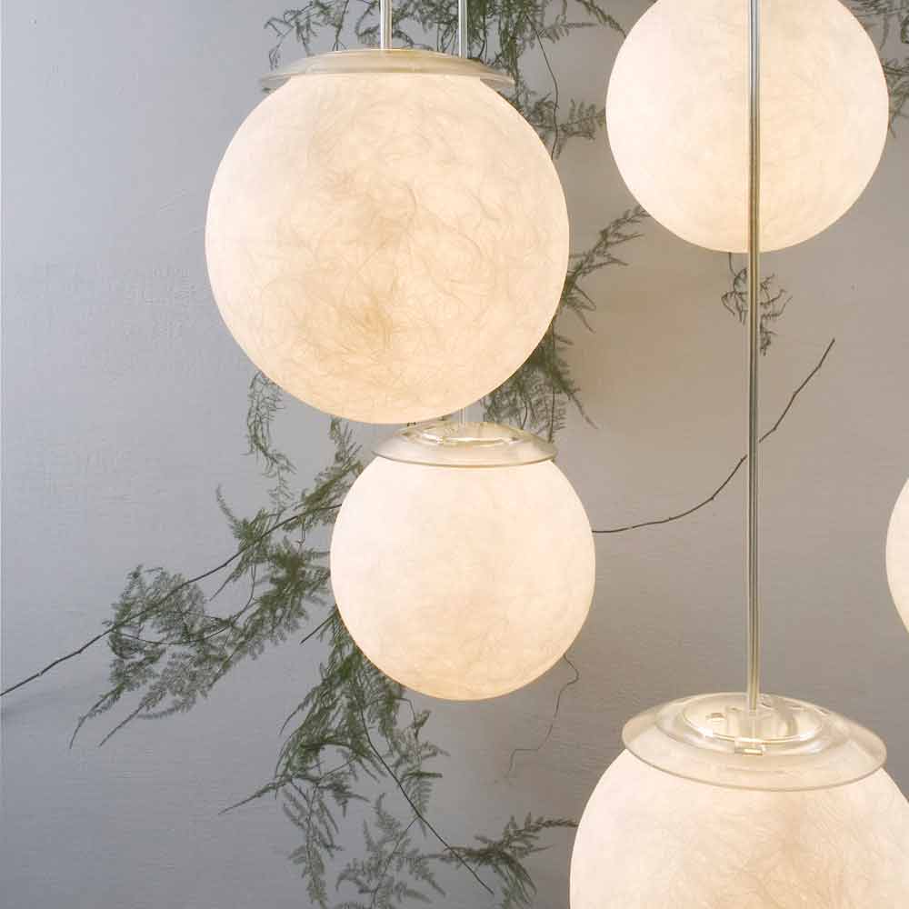 Ma stalową konstrukcję i sześć kul w Nebulite® materiał złożony z żywicy i włókna, którego żyły nadają lampie szczególny efekt księżycowy.