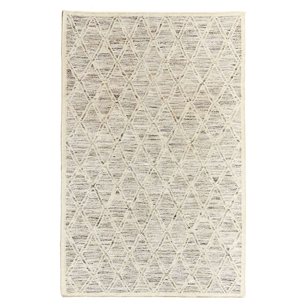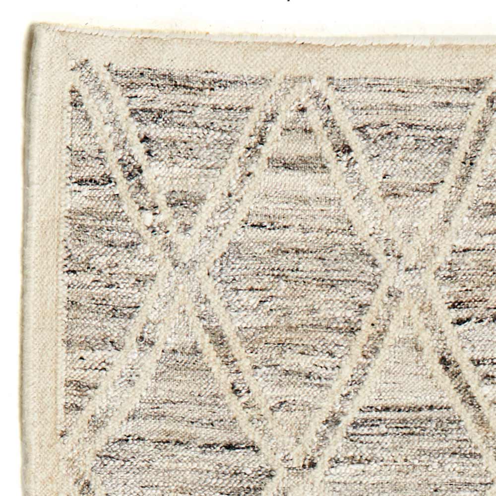 Nowoczesny dywan z wełny i bawełny z geometrycznym wzorem.