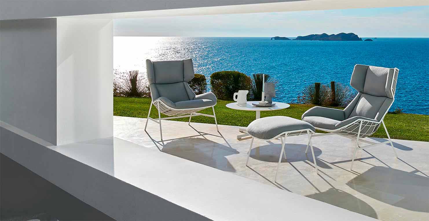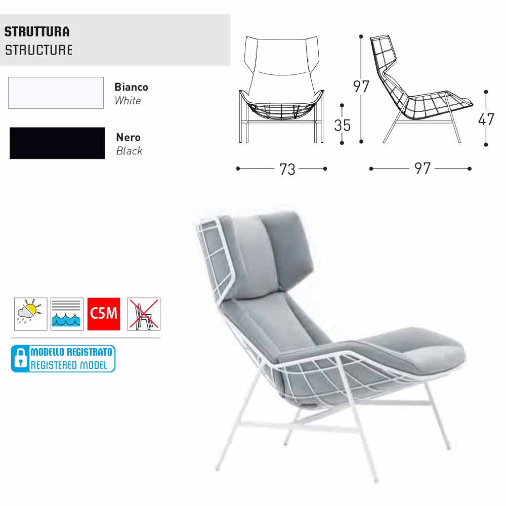 Summer Set to czarujący bergere relaksacyjny fotel ogrodowy, charakteryzujący się konstrukcją nośną ze stali malowanej proszkowo z możliwością wyboru koloru białego lub czarnego ; siedzisko i oparcie pokryte tkaniną i wyściełane gumami Dryfeel.