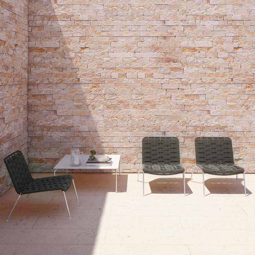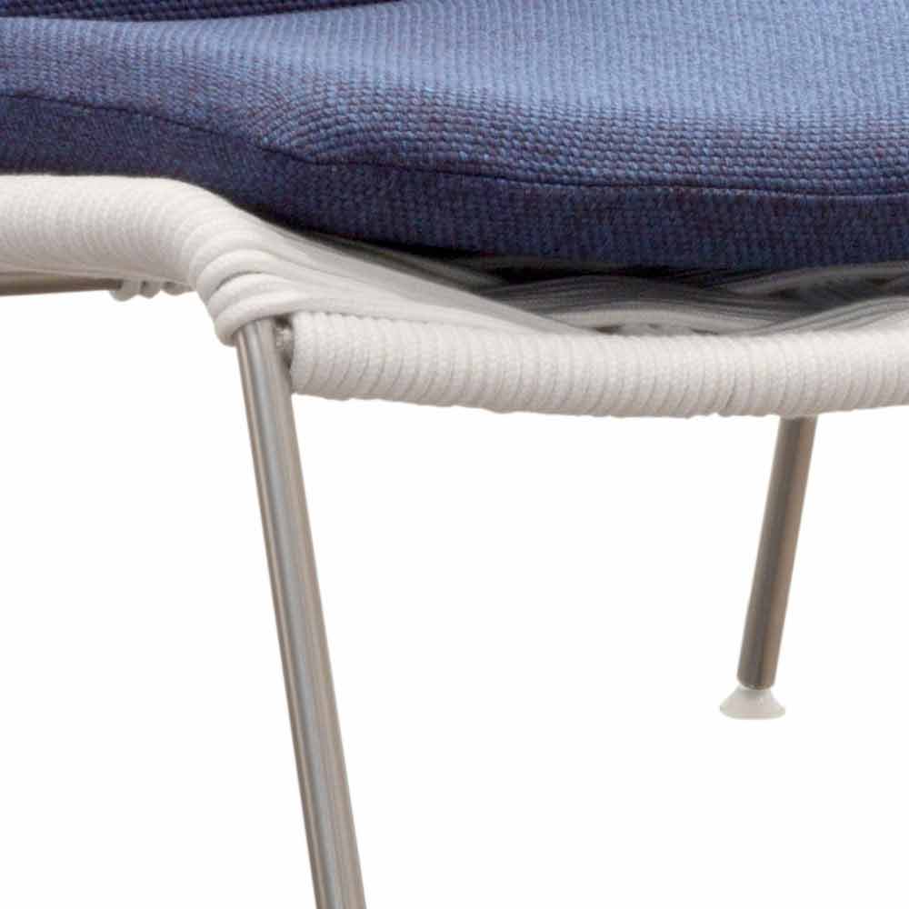 Nowoczesny fotel ogrodowy ze stali i sznura w kolorze białym lub gołębi, wykonany we Włoszech.