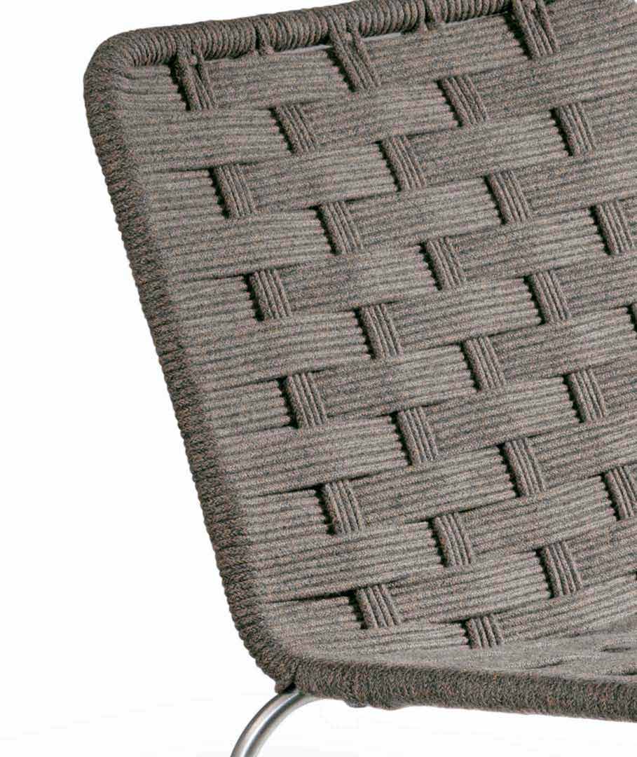 Jest to niewielki fotel o konstrukcji ze stali nierdzewnej satynowej. Siedzisko i oparcie tkane sznurkiem akrylowym z możliwością wyboru pomiędzy kolorami: