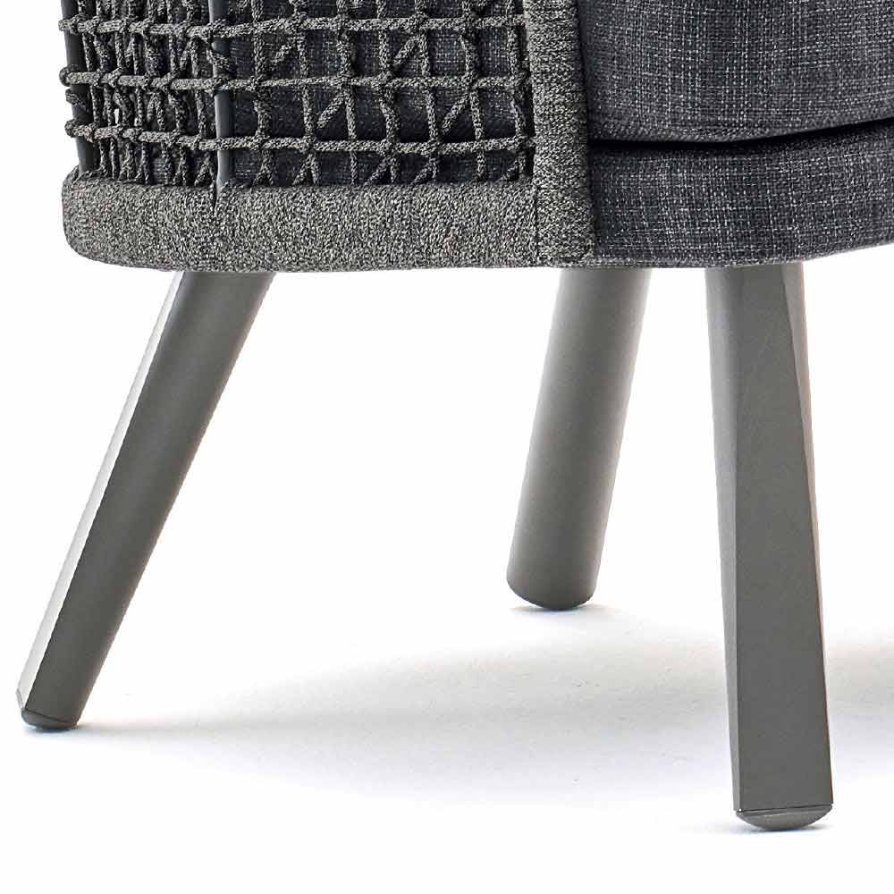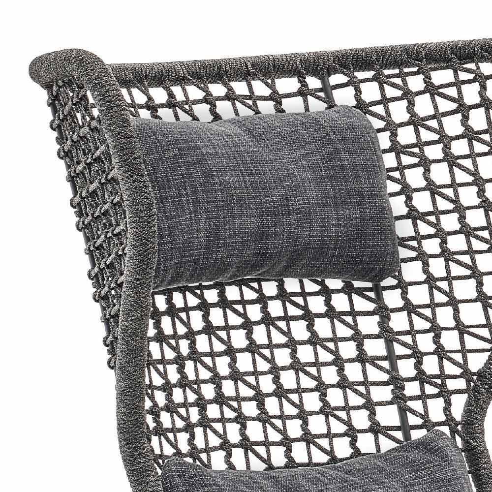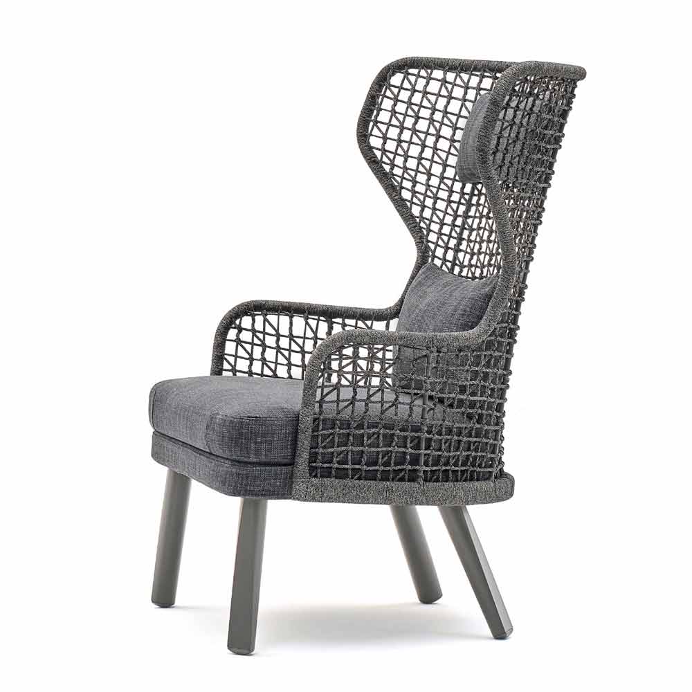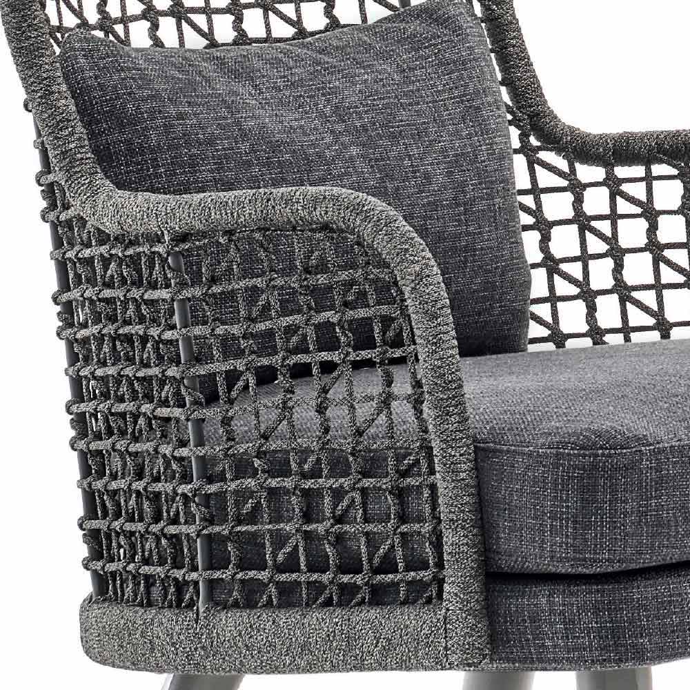 Emma to wspaniały fotel ogrodowy o strukturze wykonanej z ręcznie tkanego włókna syntetycznego z ciemnoszarą, malowaną proszkowo ramą aluminiową.