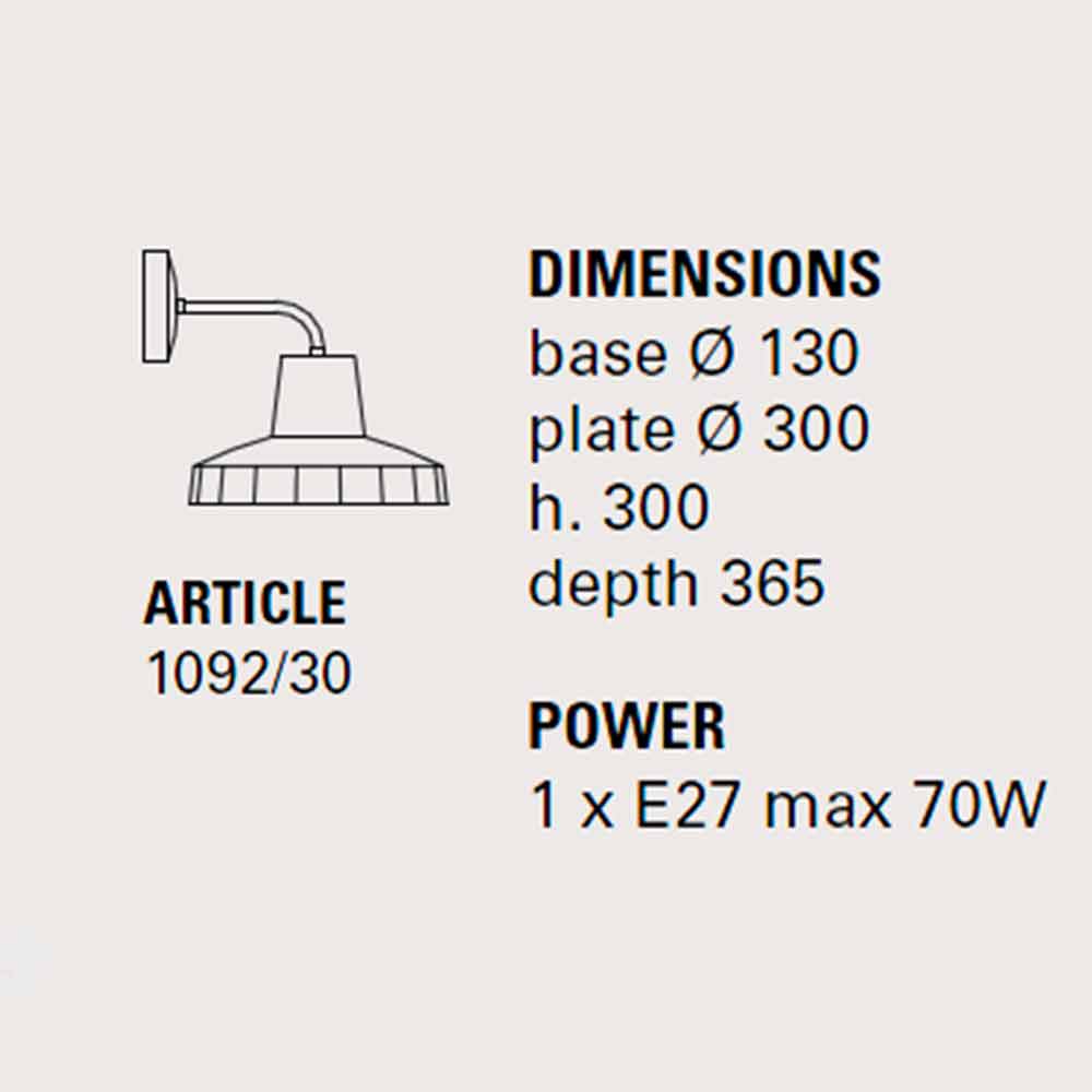 Wymiary : podstawa Ø130 x płyta Ø300 x H 300 x P 365 mm