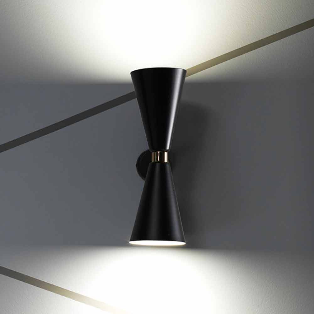 Ten kinkiet wyprodukowany w całości we Włoszech, wykonany jest z matowego czarnego metalu wzbogaconego detalami w złotym wykończeniu.