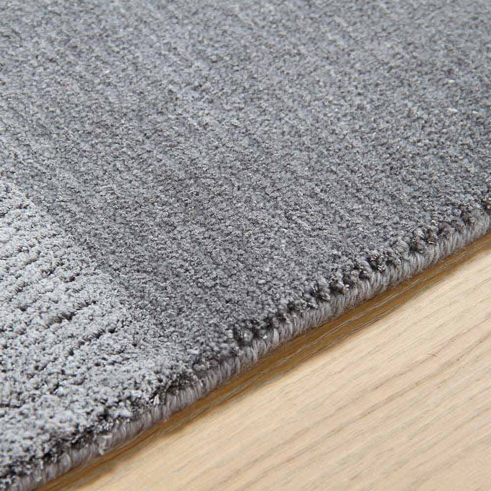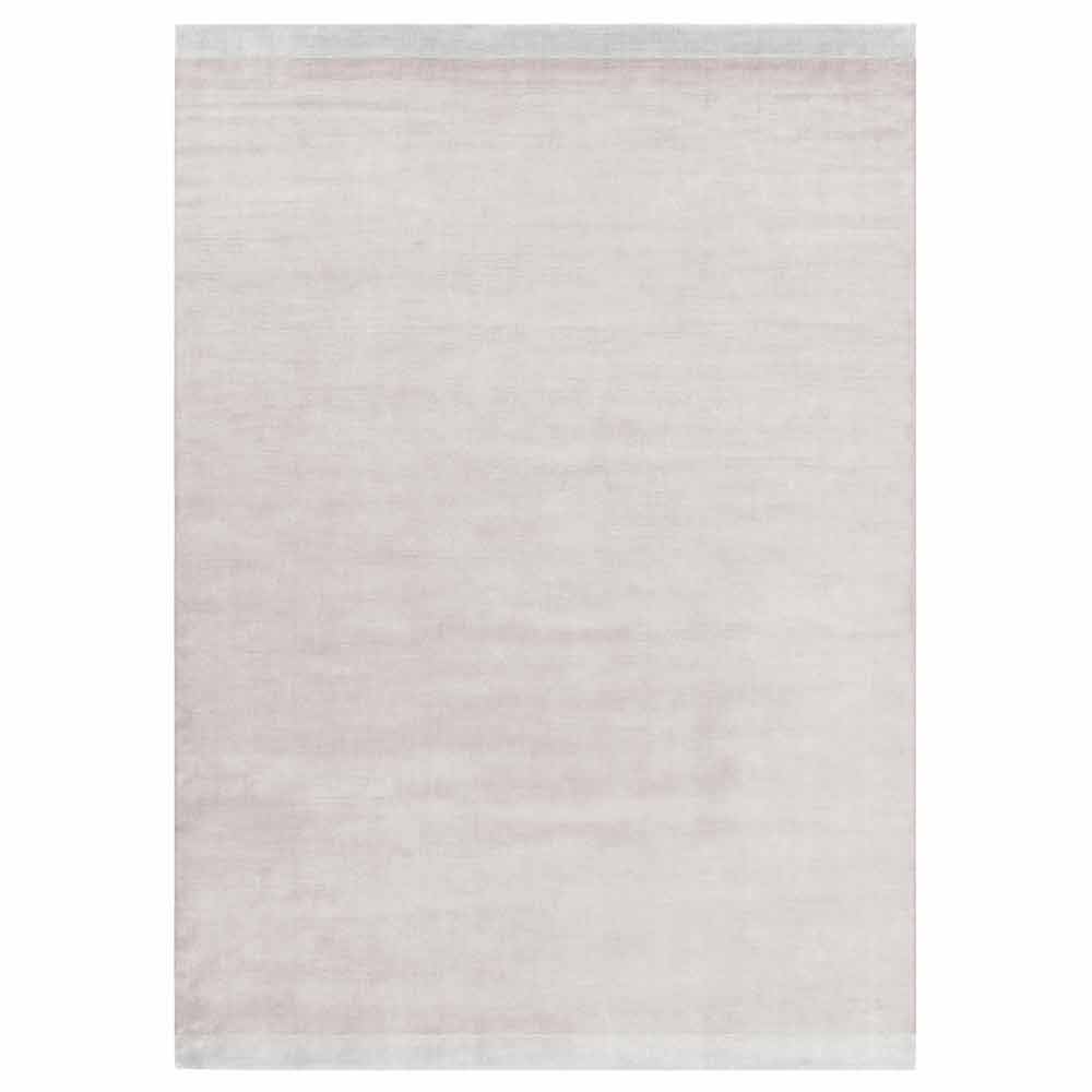 Duży dywan o nowoczesnym designie, wykonany z jedwabiu, bawełny i wełny, dostępny w kilku kolorach z paskiem w tonie.
