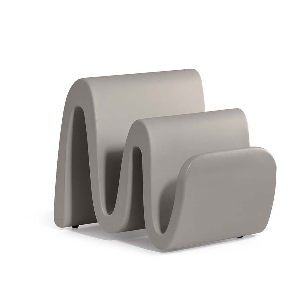 Ten stojak na czasopisma w całości wykonany we Włoszech z kolorowego polietylenu charakteryzuje się wyrafinowanym designem i szczególnym kształtem, który przypomina małą falę. Niezwykle funkcjonalny ten stojak na czasopisma to dodatek meblowy odpowiedni do każdego otoczenia i przestrzeni wewnętrznej, który przyciąga uwagę dzięki minimalistycznemu, ale współczesnemu i urzekającemu stylowi.