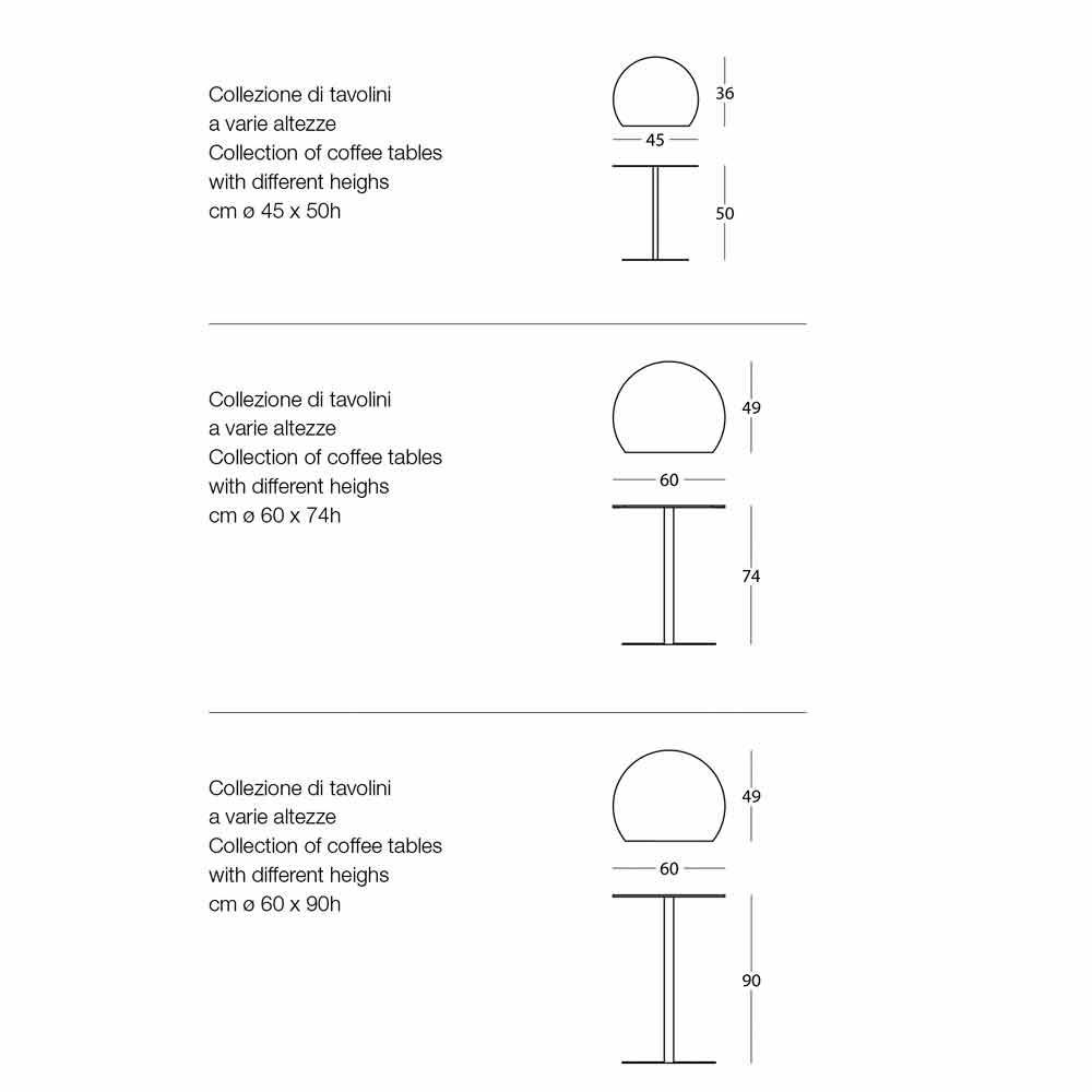 Zaprojektuj stolik kawowy z metalu w różnych kolorach iw 3 różnych rozmiarach, luksusowy wyprodukowany we Włoszech.