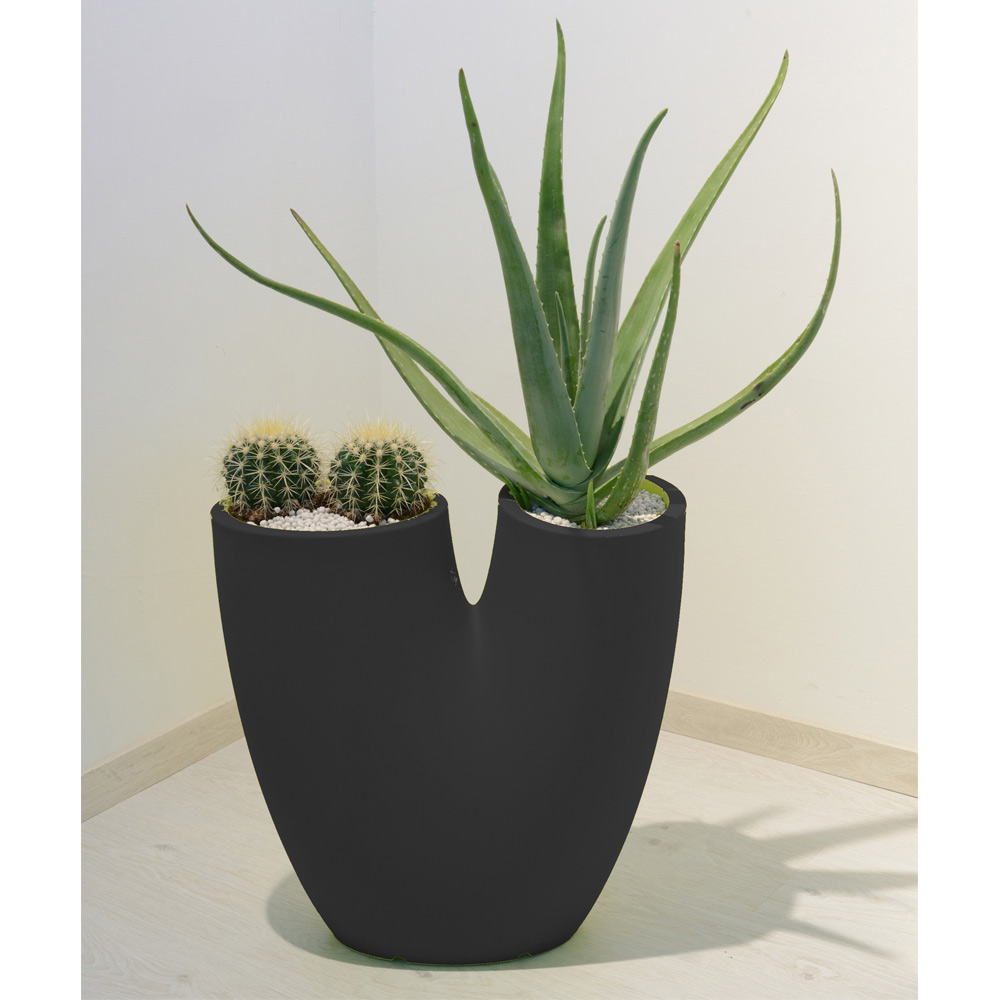 nowoczesny wazon o smukłym i urzekającym designie, przeznaczony do umieszczania dwóch rodzajów różnych roślin w jednym wazonie dzięki dwóm istniejącym otworom. Może być używany zarówno jako wazon, jak i uchwyt na wazon. Dostępny w różnych kolorach, najlepiej nadaje się zarówno do wnętrz, jak i na zewnątrz.
