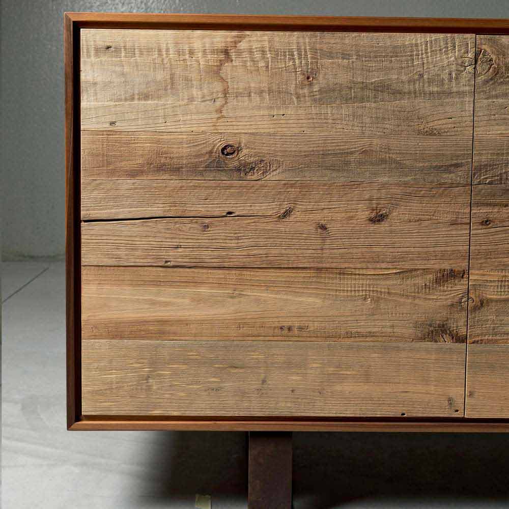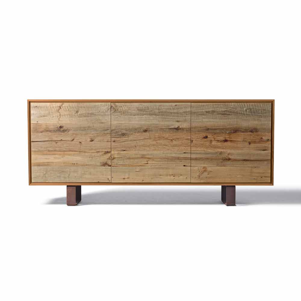 Nowoczesny kredens z 3 drzwiczkami z naturalnego orzecha, l.215xp.50cm, Flora