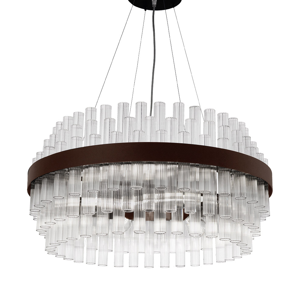 Luksusowy, ręcznie robiony żyrandol w paski z dmuchanego szkła wyprodukowany we Włoszech.