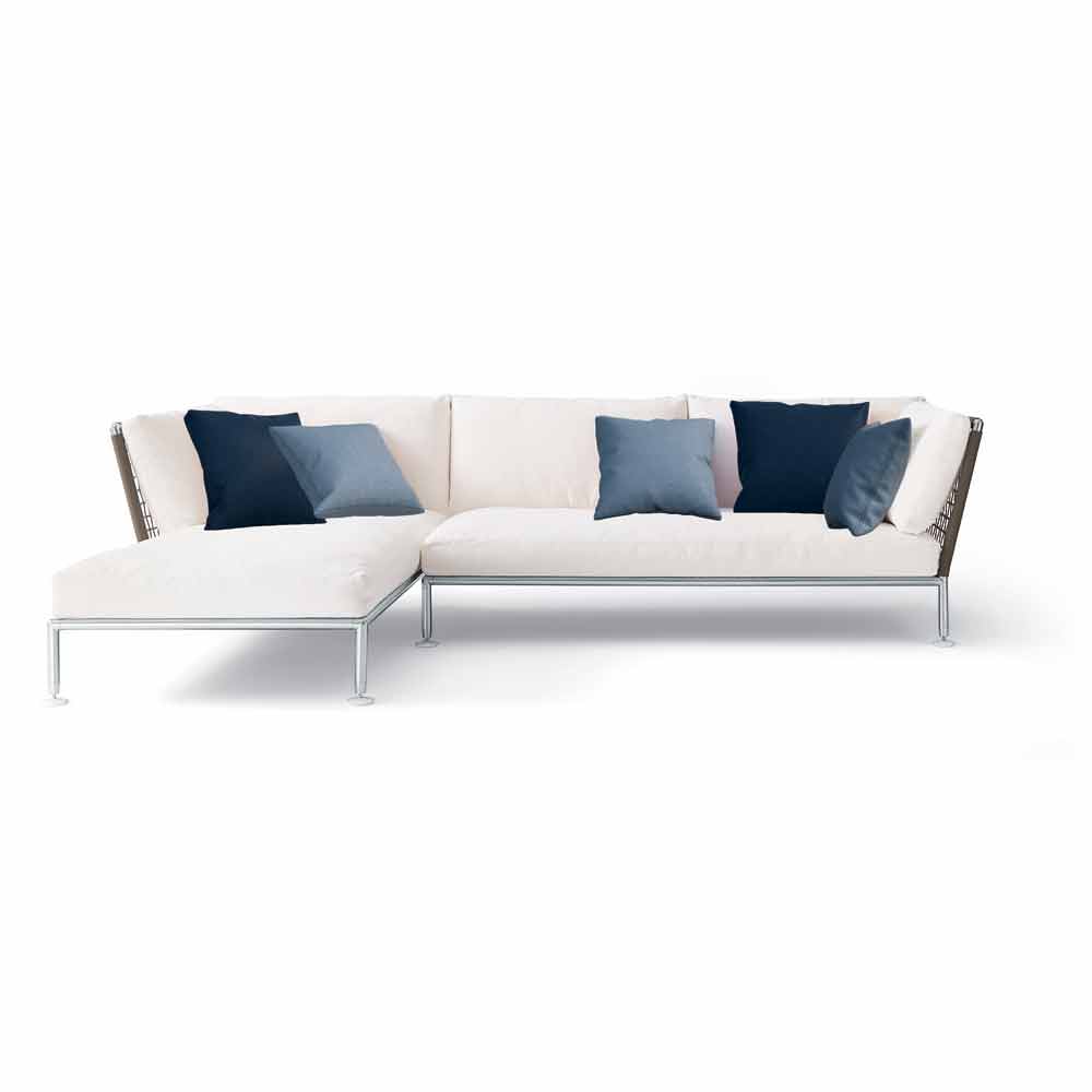 Można go postawić w rogu tarasu, w ogrodzie lub we wszystkich miejscach gdzie można odtworzyć chwile wyciszenia i relaksu nie rezygnując przy tym z niepowtarzalnego stylu made in Italy, narożnik z szezlongiem posiada konstrukcję