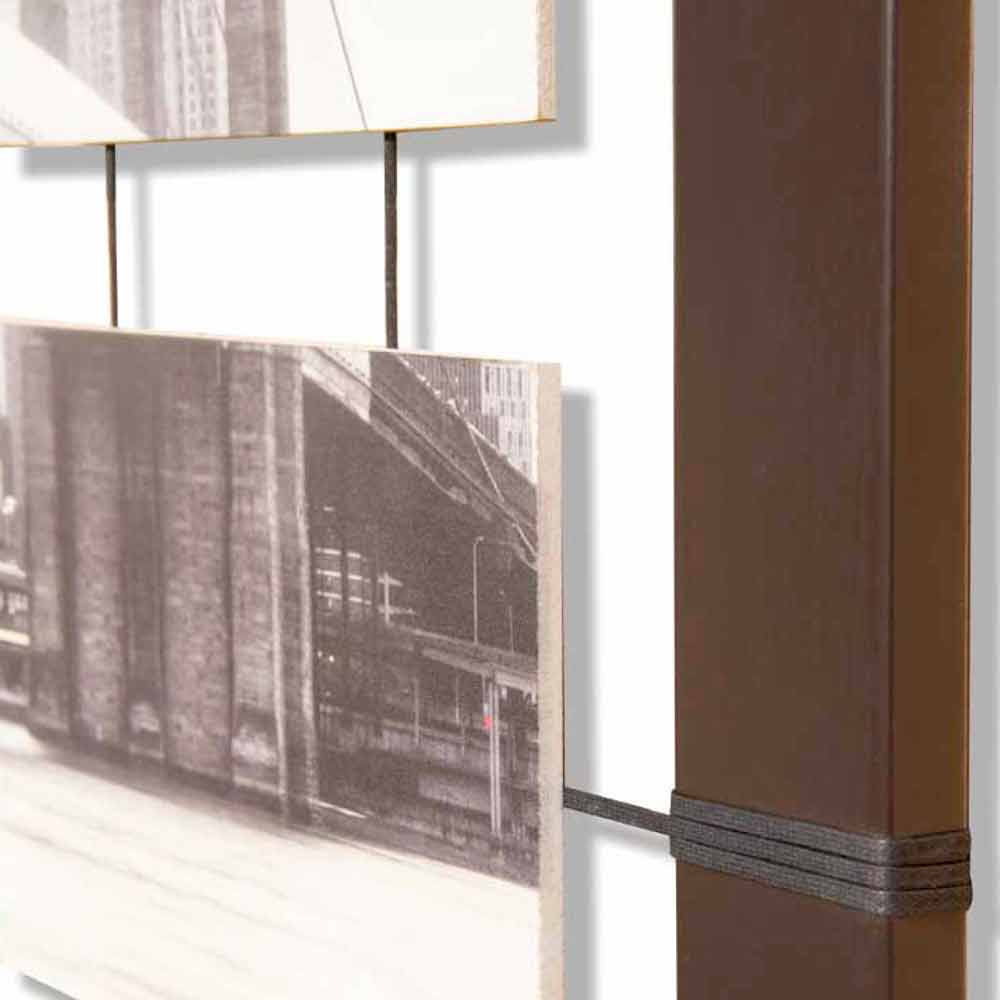 Wykończenia: Rama z drewna w kolorze kawy, z 10-cioma ręcznie zdobionymi panelami, wiszącymi na linie.