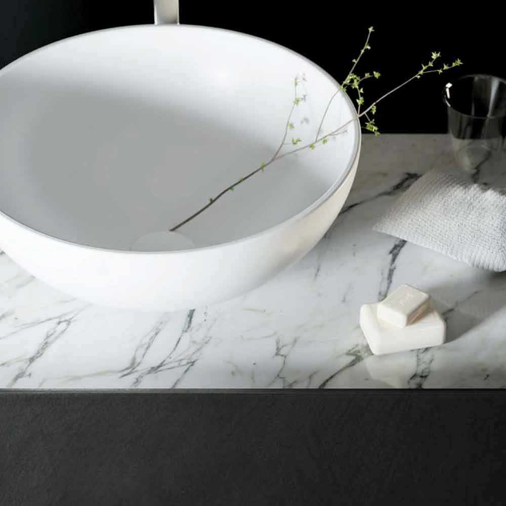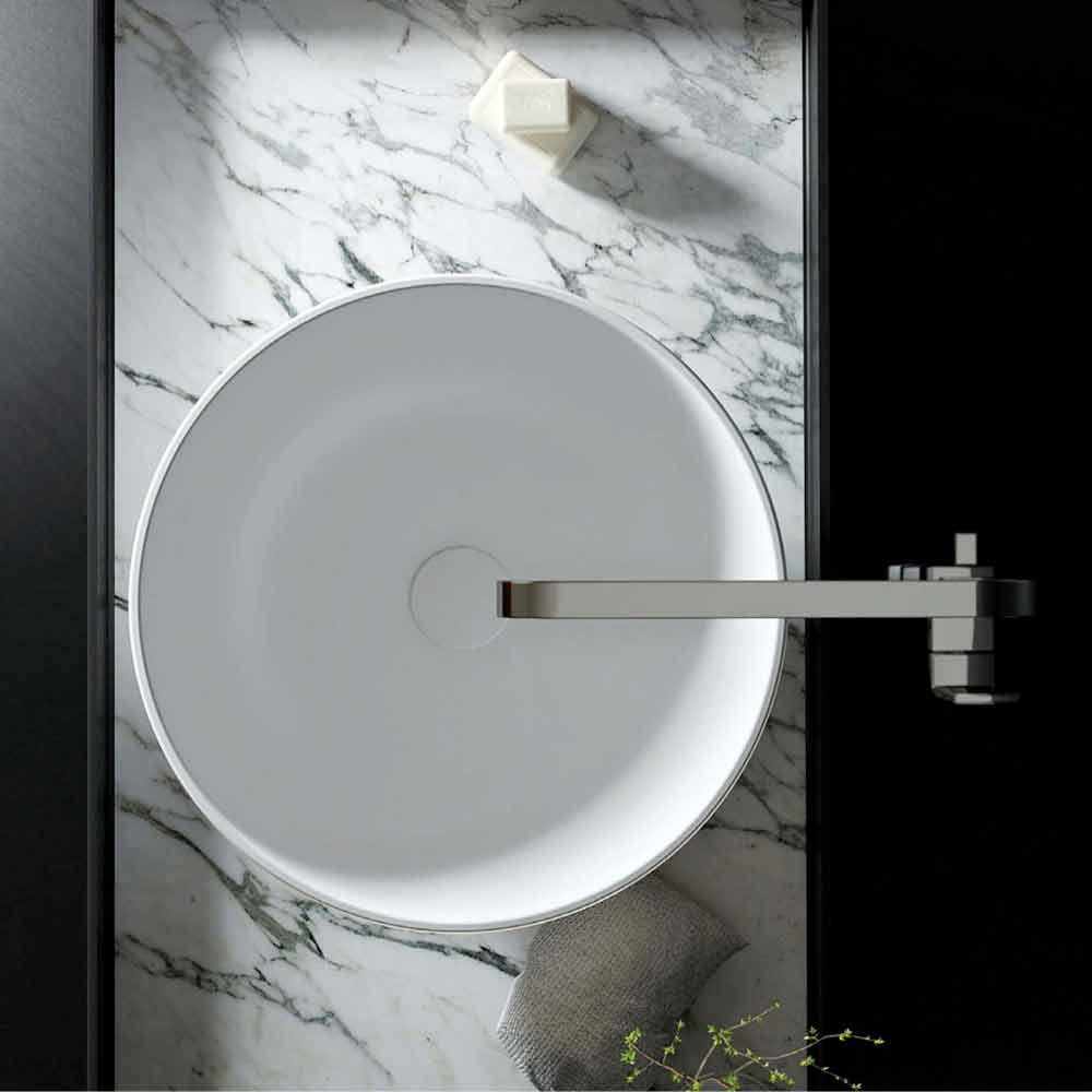 Donnas to wolnostojąca wolnostojąca umywalka wykonana z litej powierzchni o okrągłym planie.
