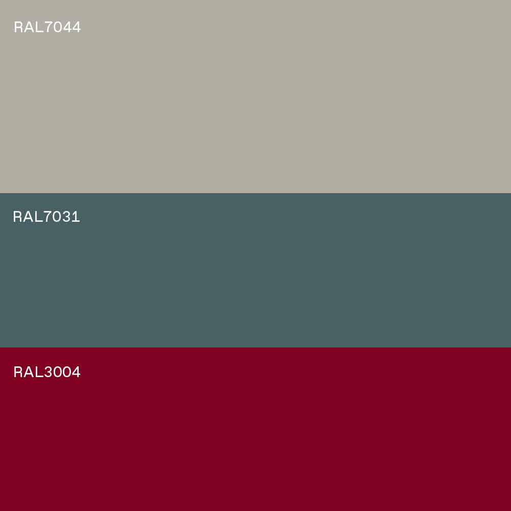 - nogi w kolorze szarym RAL7031 + krzyż bordowy RAL3004 + blat w kolorze gołębim RAL7044