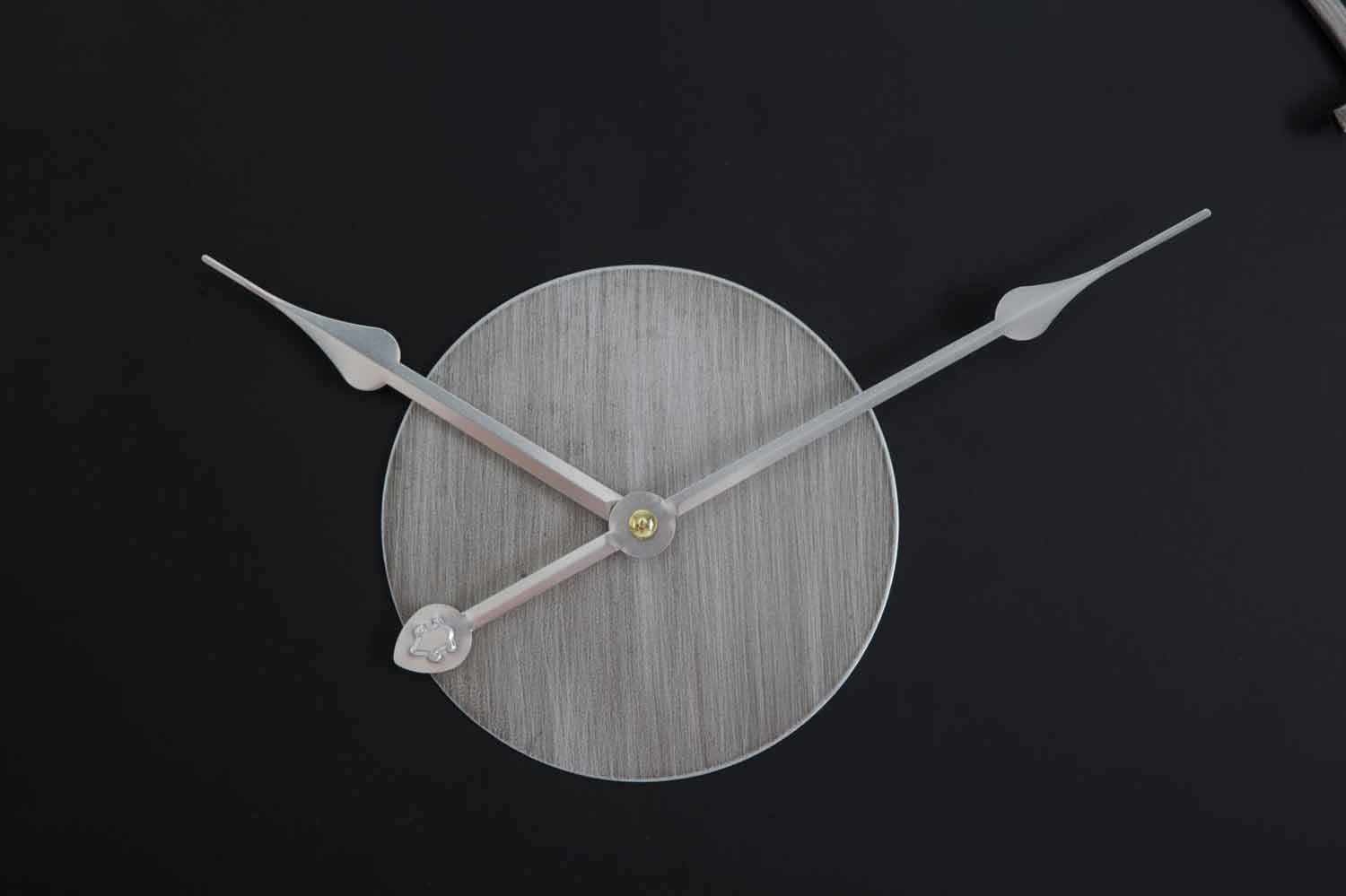 Nowoczesny zegar z żelaza i płyty MDF z okrągłą ścianą.