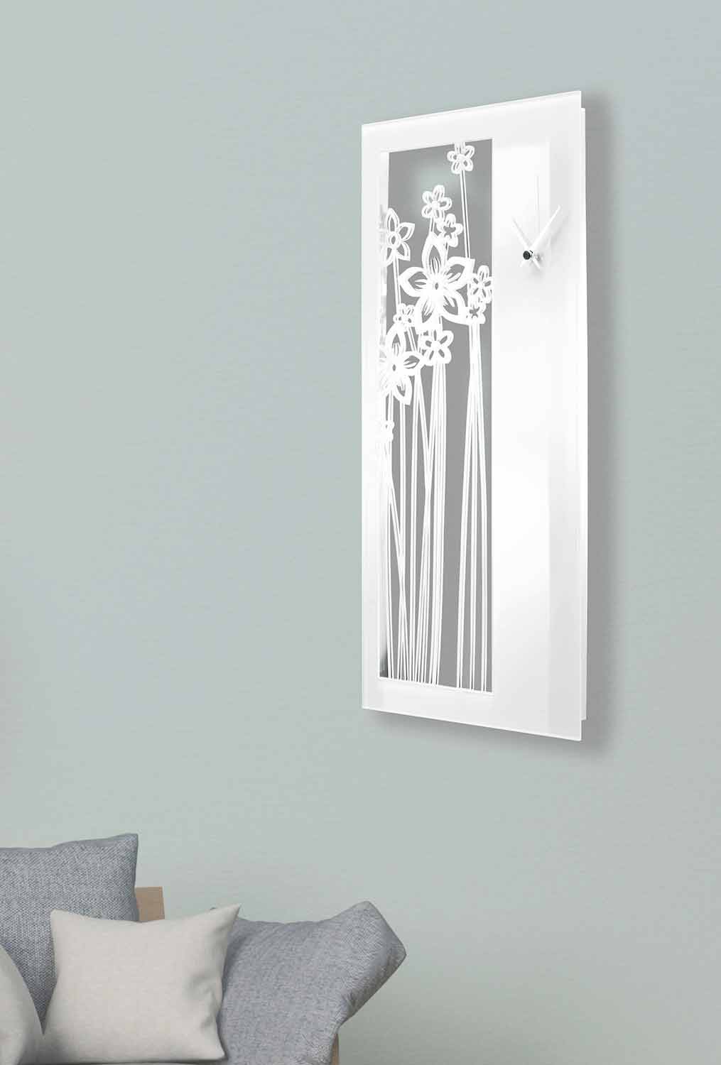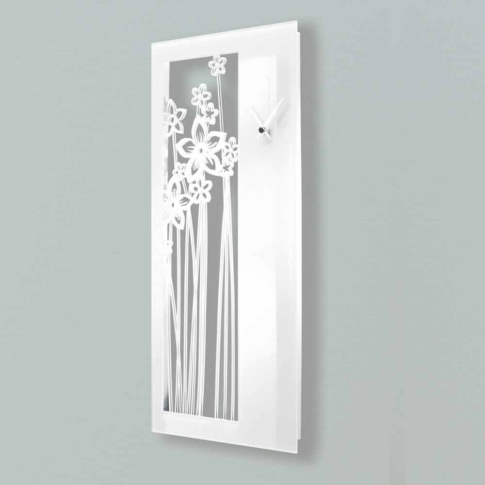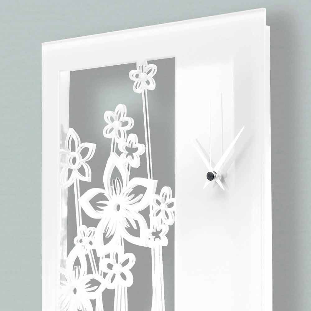 Duży zegar ścienny o prostokątnym i nowoczesnym designie z białej pleksi, wyprodukowany we Włoszech.