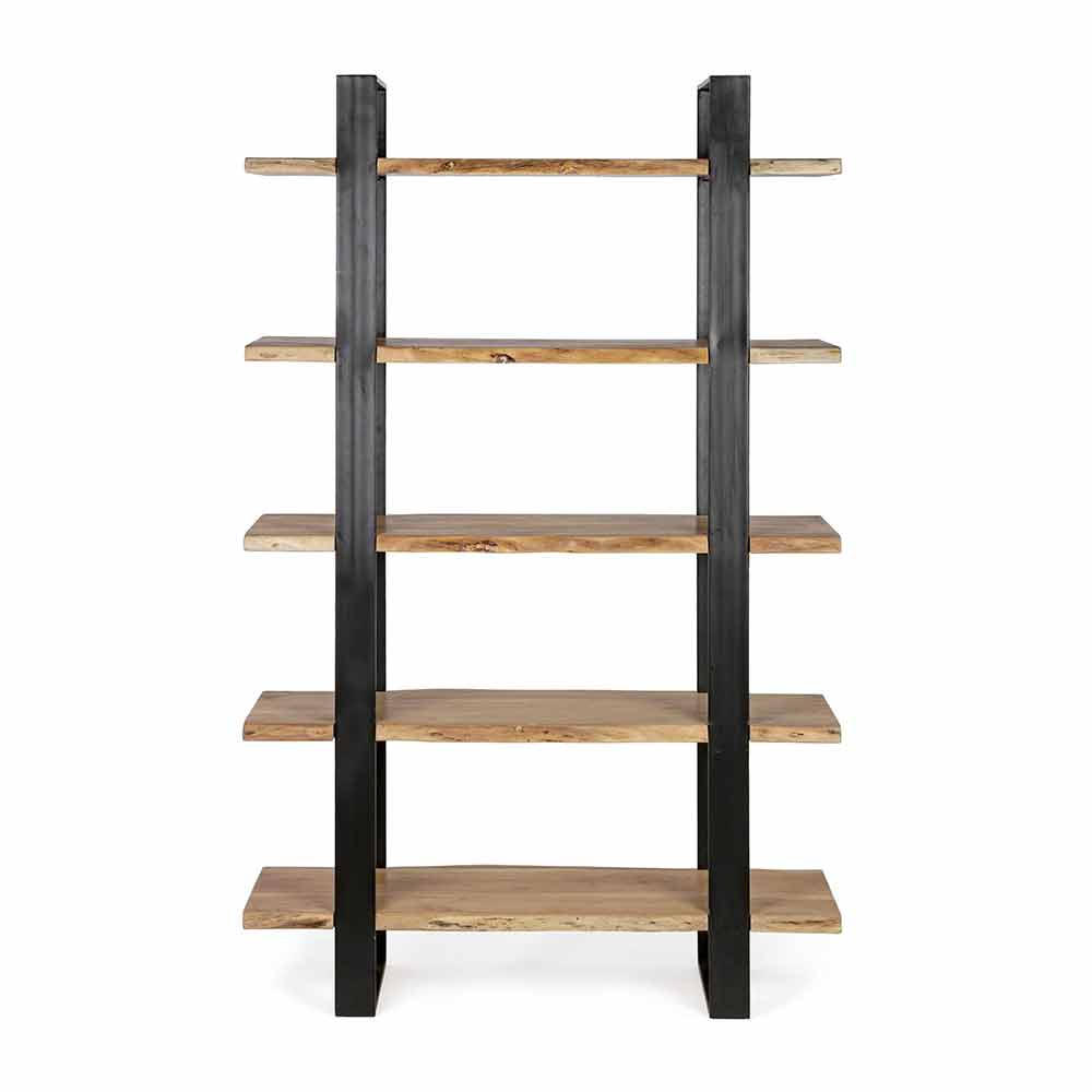 Nowoczesny regał podłogowy ze stali Homemotion z drewnianymi półkami - Lanza