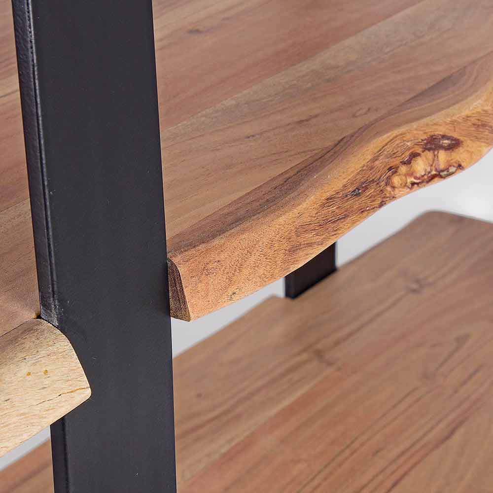 Nowoczesny regał podłogowy ze stali malowanej i drewna akacjowego.