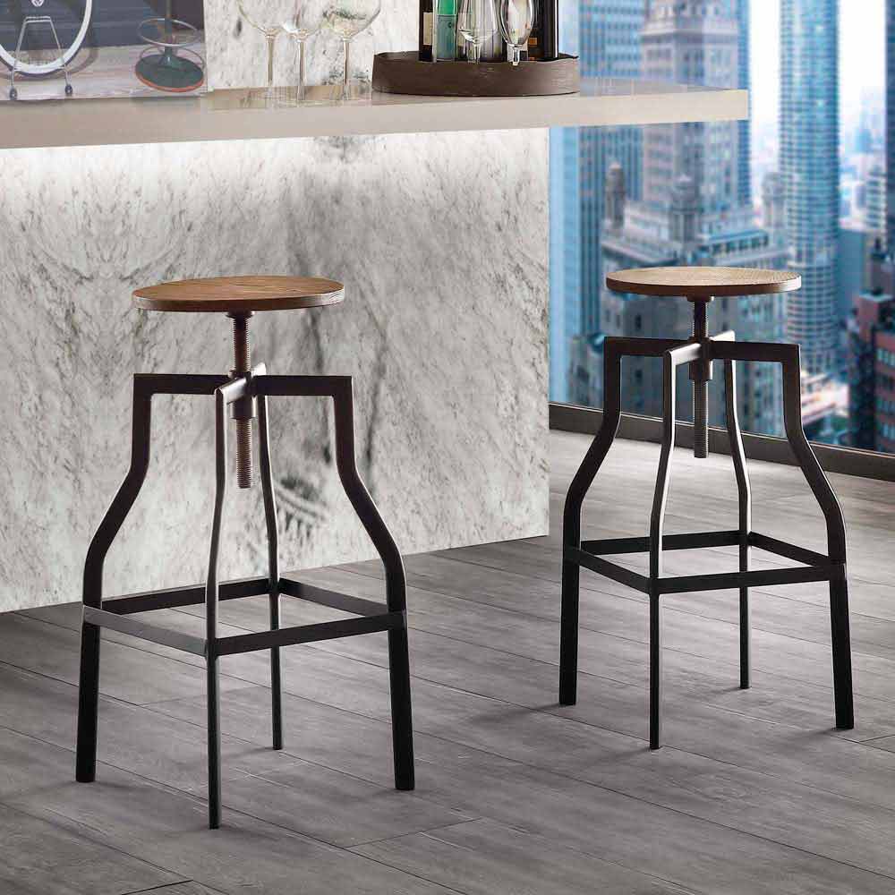 Składa się z przemysłowej konstrukcji z czarnego metalu i siedziska z przemysłowego orzecha o regulowanej wysokości maksymalnie do H76 cm. Zapewnij maksymalny styl i wygodę dzięki temu stołkowi.