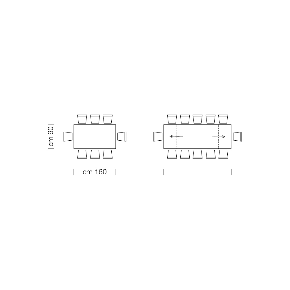 - Dł. 160 (238) x gł. 90 x wys. 78 cm 12 siedzeń z dwoma przedłużeniami wewnętrznymi o długości 39 cm;