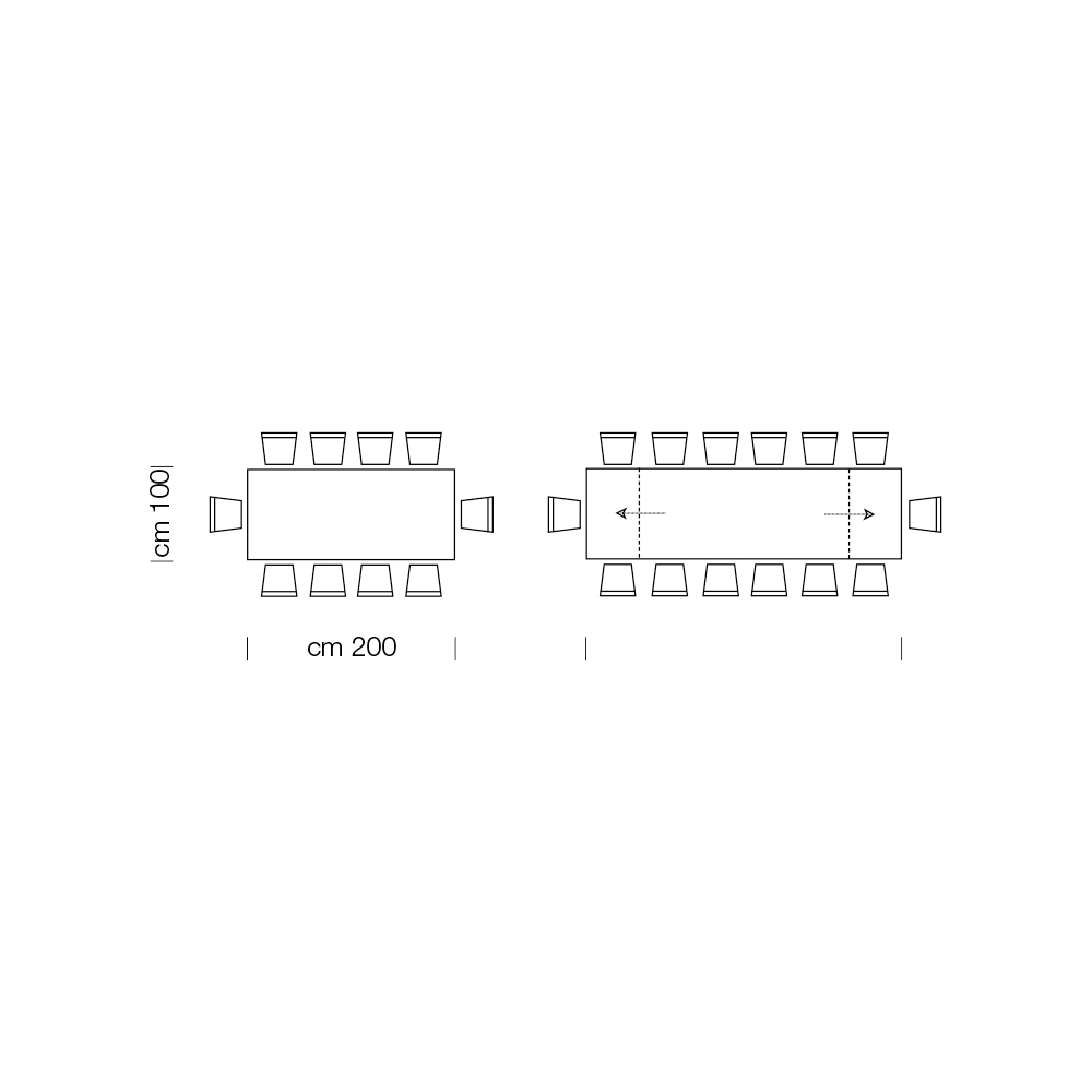 - Dł. 200 (300) x gł. 100 x wys. 78 cm 14 siedzeń z dwoma przedłużeniami wewnętrznymi o długości 39 cm.