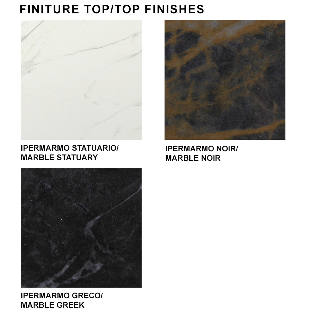 ceramicznym blatem uzyskanym z fazowanej tafli szkła i płyty ceramicznej z efektem marmuru oraz