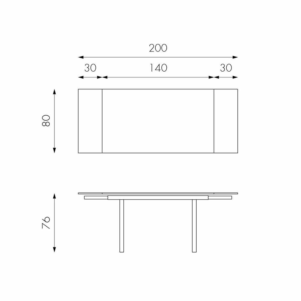 Nardo to rozkładany stół do 200 cm o wymiarach: dł. 140/200 x gł. 80 x wys. 76 cm.