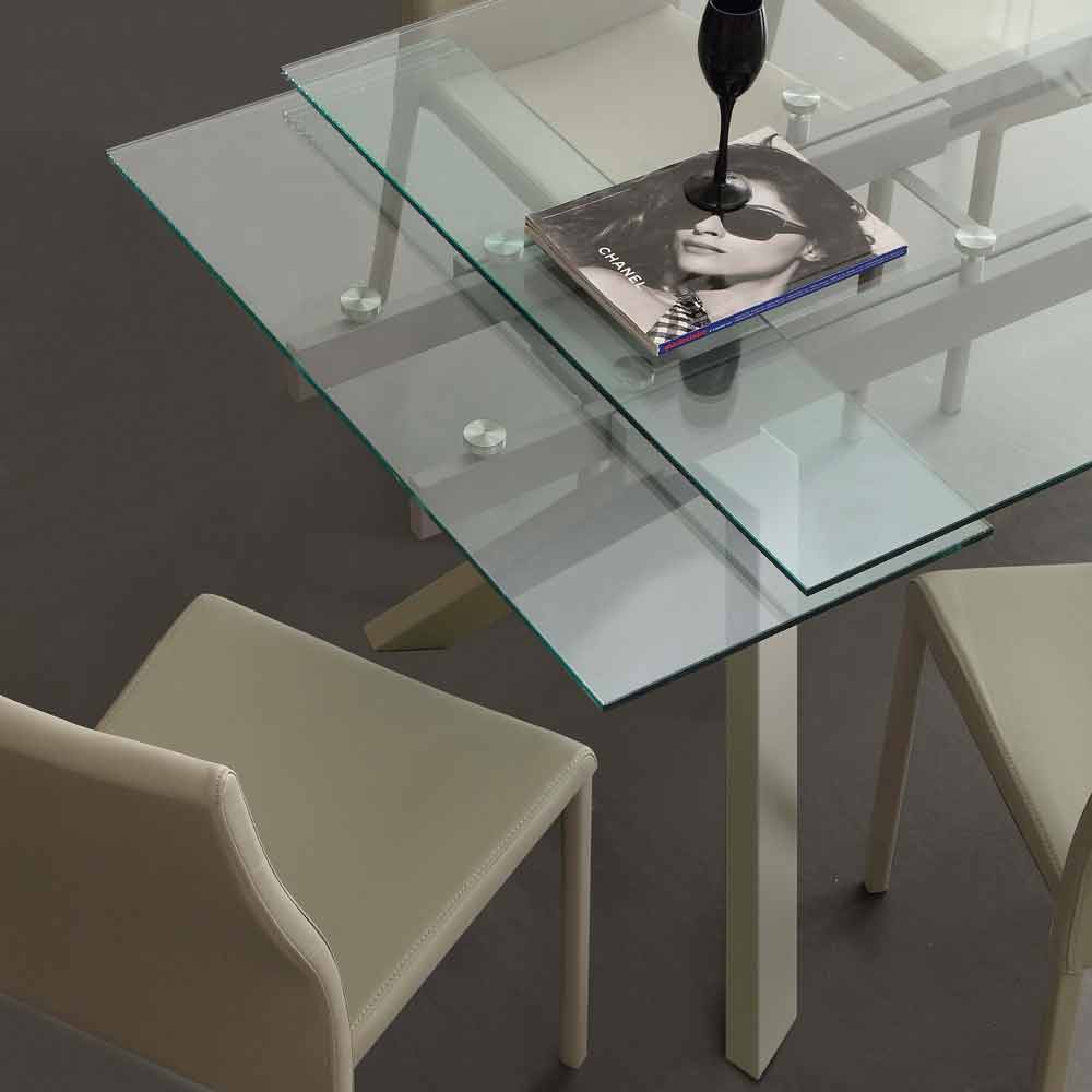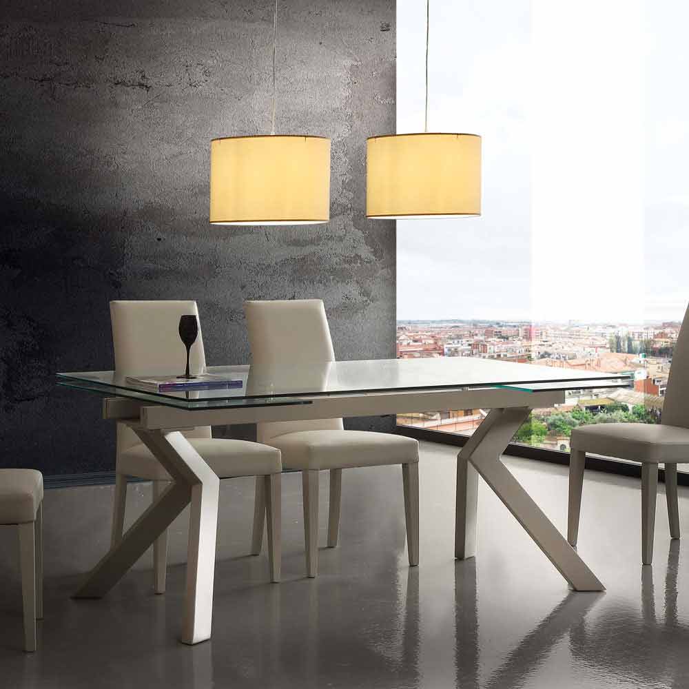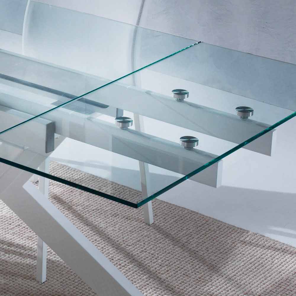 Nowoczesny rozkładany stół Mesa wykonany z metalu i hartowanego szkła. Nowoczesny stół jadalny z błyszczącą ramą ze stali nierdzewnej i blatem ze szkła hartowanego (10 mm). Z metalową ramą, malowaną na kolor czarny, biały lub jasnoszary. Wykonana z prostego materiału, takiego jak metal i szkło, Mesa łączy w sobie design i prostotę.