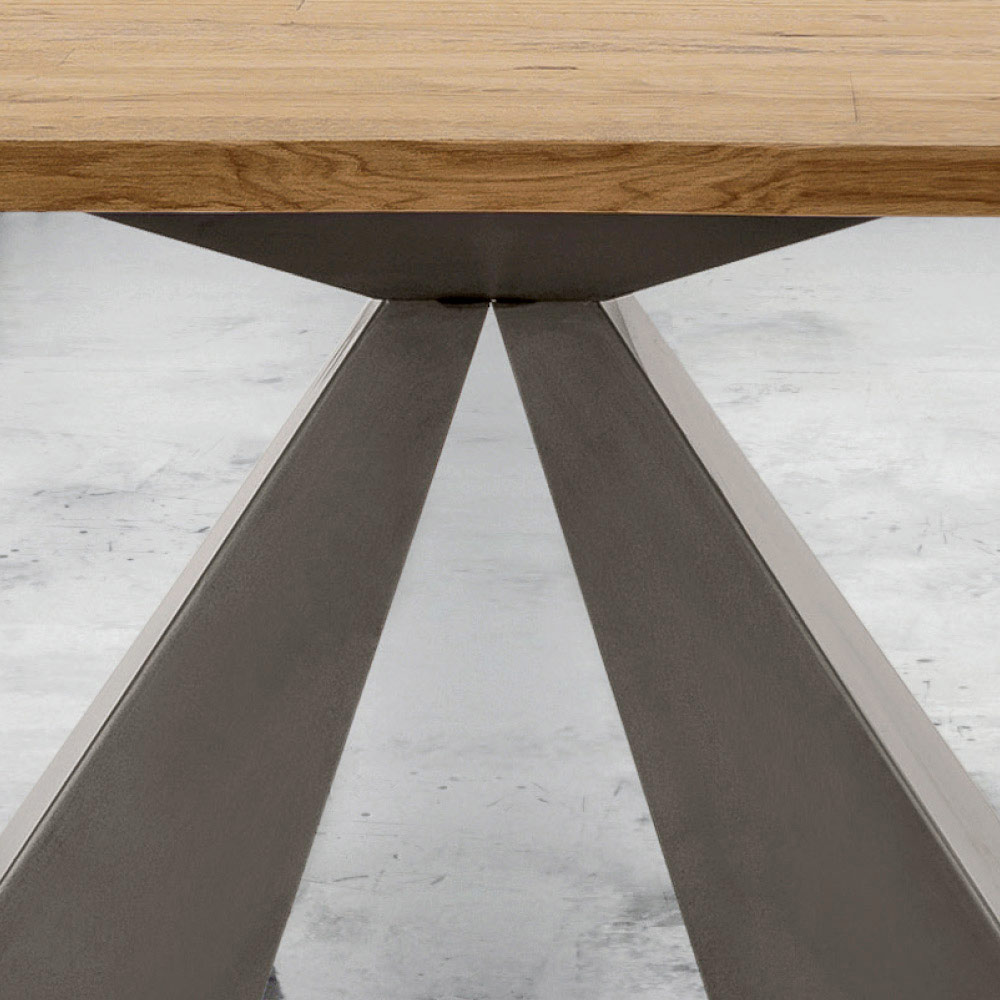 Rozkładany stół kuchenny z fornirowanego drewna i stalowej podstawy, wykonany ręcznie we Włoszech.