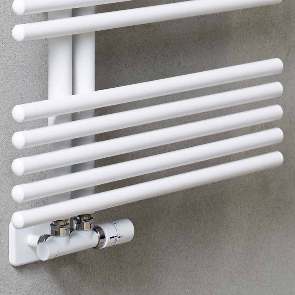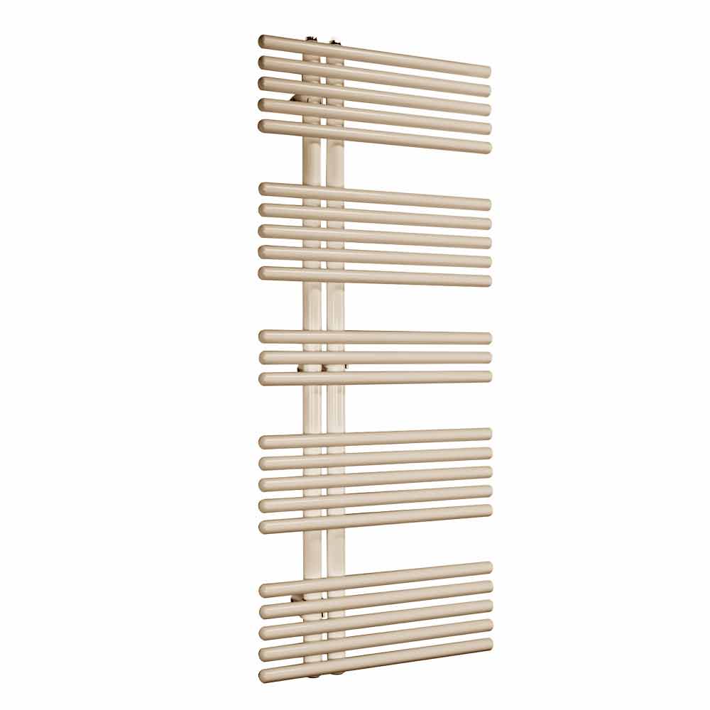 grzejnik na ręczniki ma konstrukcję wykonaną z pionowych rurek o średnicy 35 mm i poziomych okrągłych rurek o średnicy 25 mm. Jej nowoczesny i szczególny kształt sprawia, że jest
