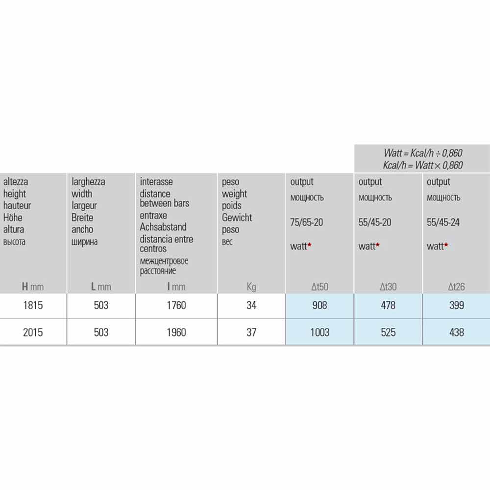 - Wys. 1815 x dł. 503 x wew. 1760 mm x moc wyjściowa w (Δt50 *) 908; Wydajność w (Δt30 *) 478; Wydajność w (Δt26 *) 399