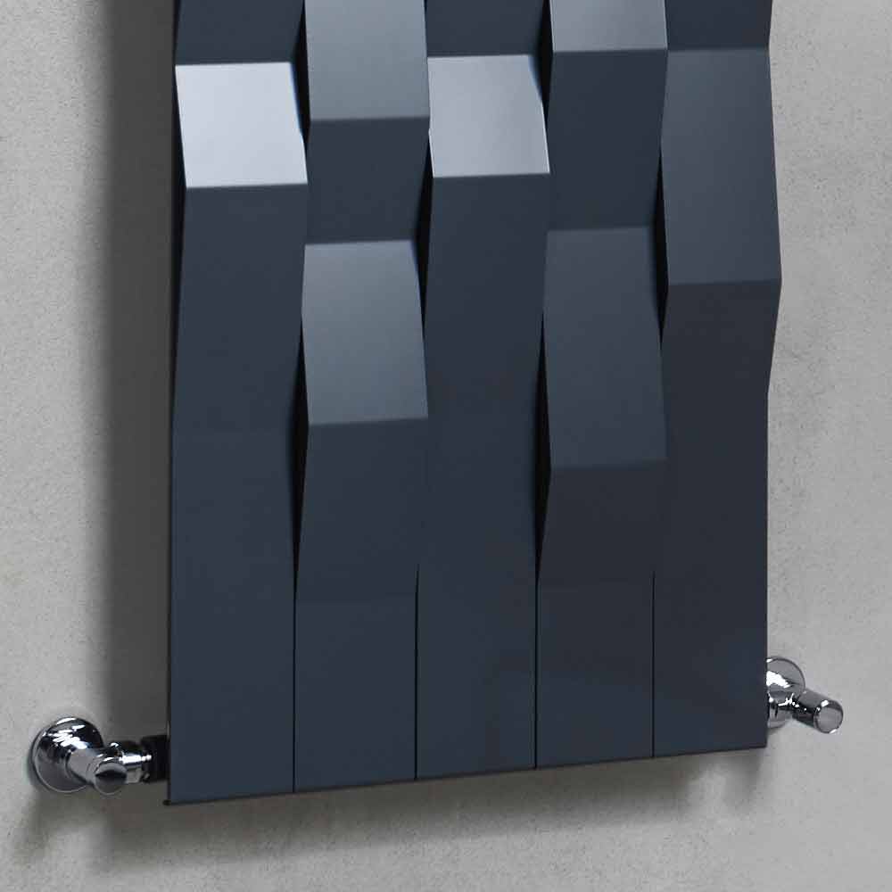 Grzejnik ścienny o nowoczesnym designie wykonany ze stali, z 5 pionowymi prętami, wyprodukowany we Włoszech.