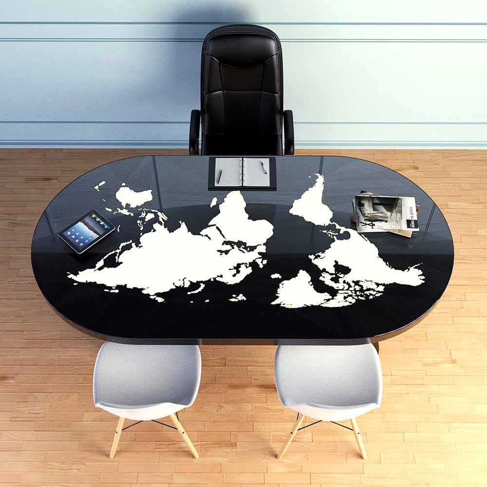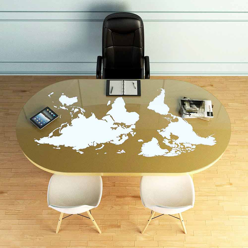 Pontida to stolik biurkowy o ultranowoczesnym designie; wykonany z Solid Surface® i szklanego blatu, na którym reprezentowany jest cały świat, który dzięki obecności diod LED świeci i zmienia kolor według własnego uznania.