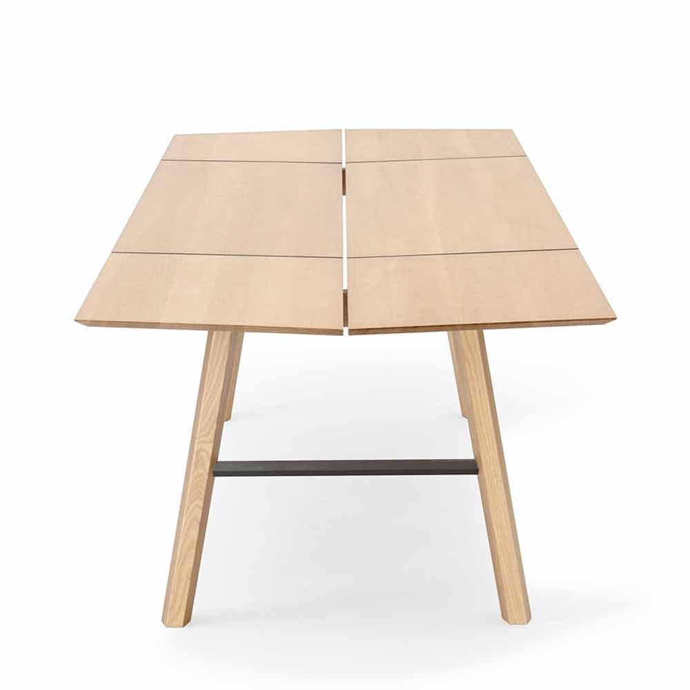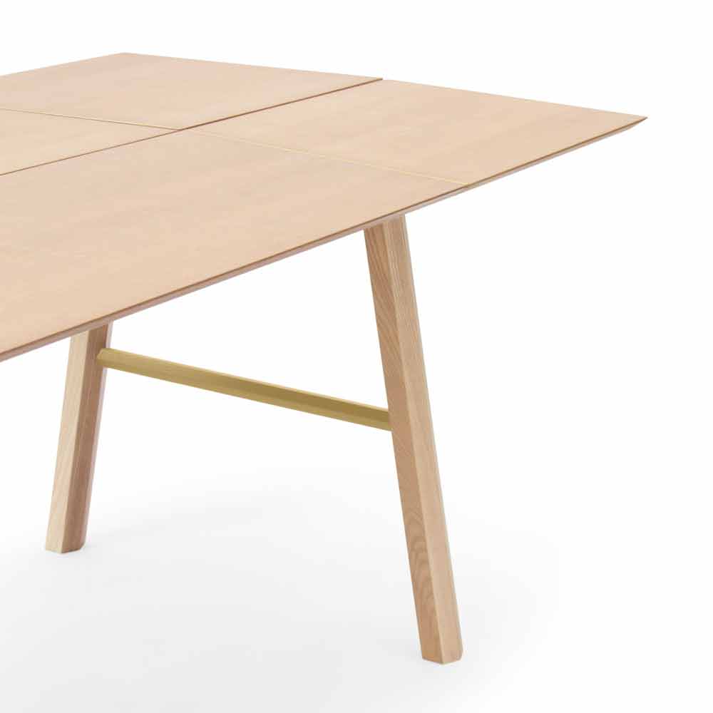 Nowoczesny stół jadalny z litego drewna jesionowego z fornirowanym blatem.